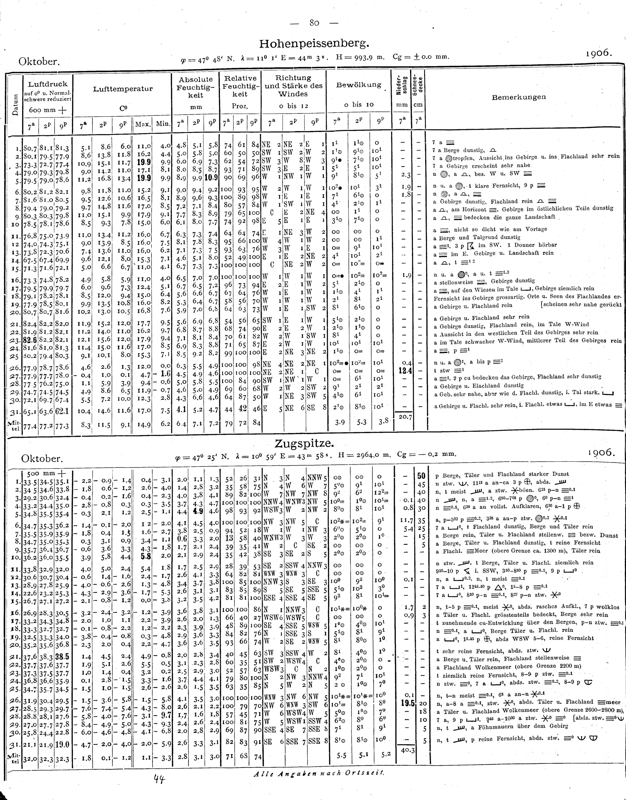Tägliche Beobachtungen der Stationen II. Ordnung