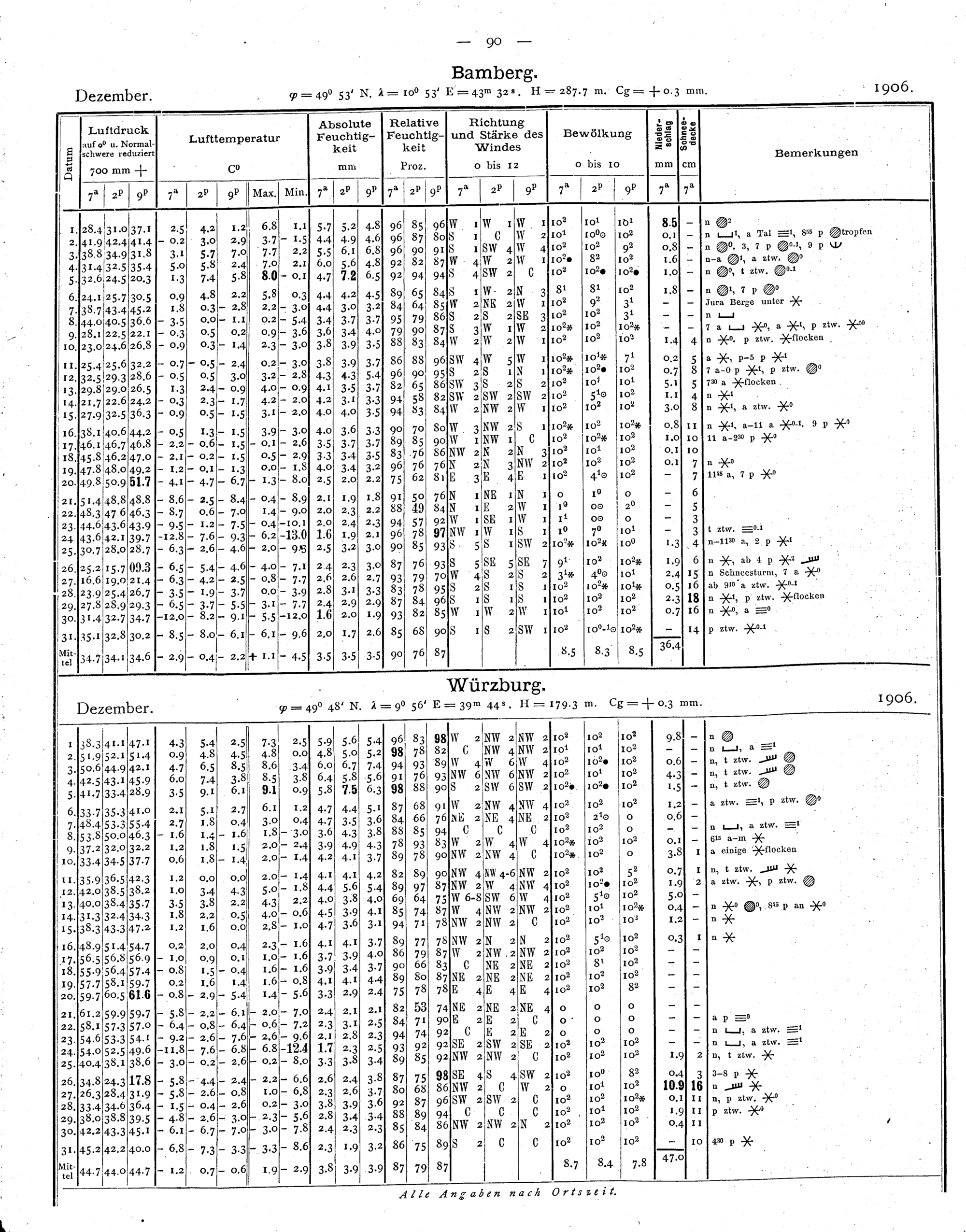 Tägliche Beobachtungen der Stationen II. Ordnung