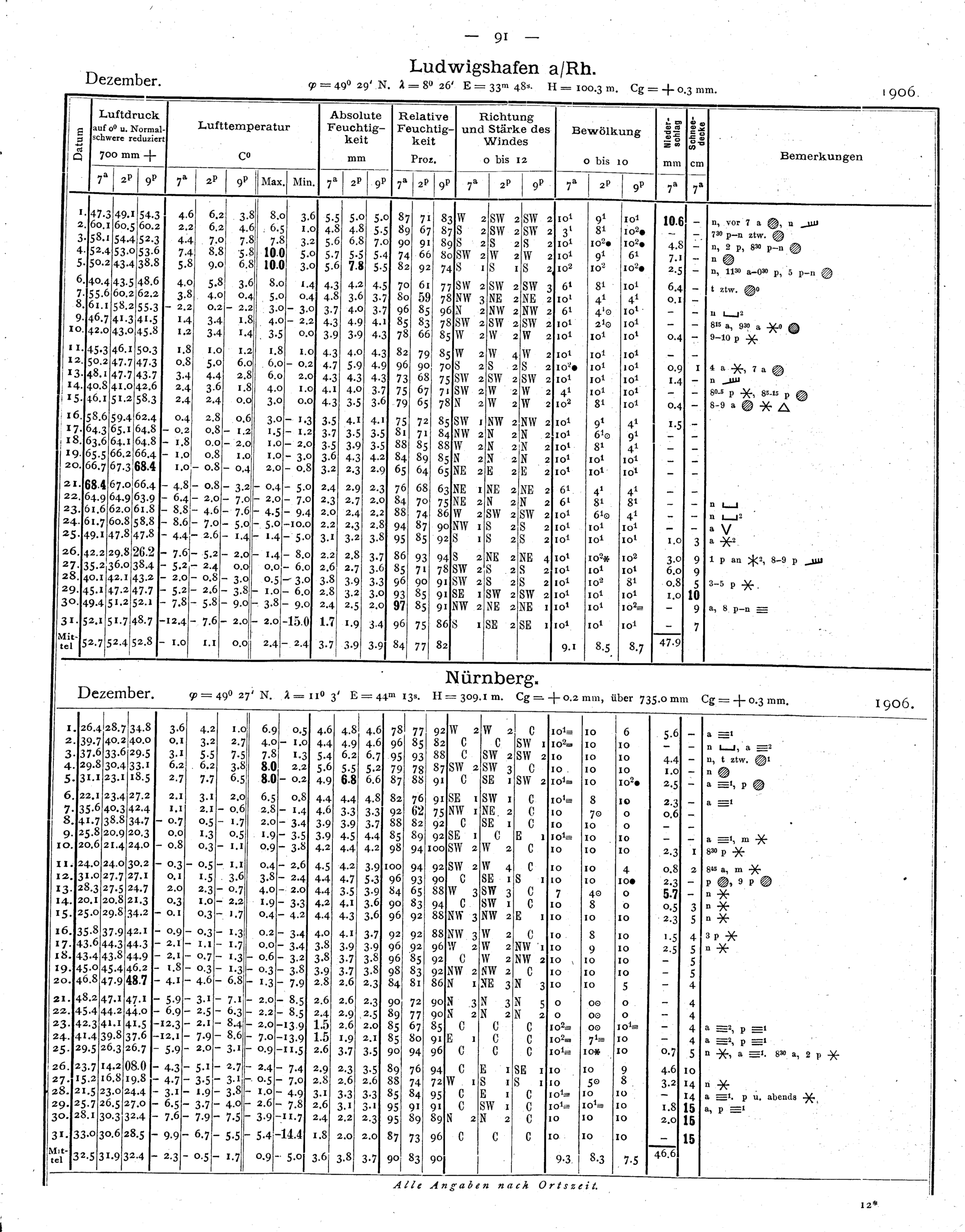 Tägliche Beobachtungen der Stationen II. Ordnung