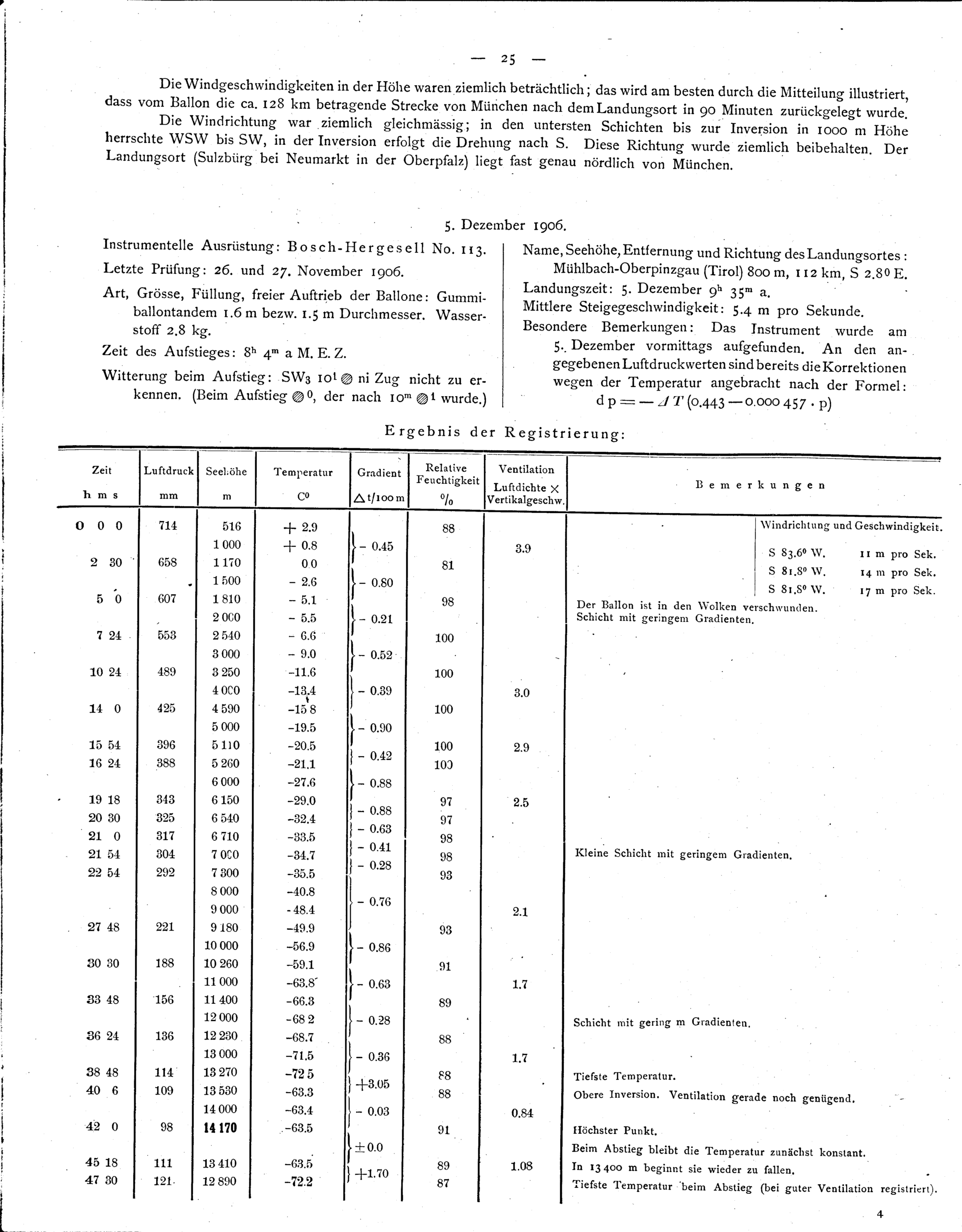 Die von der K. B. Meteorologischen Centralstation im Jahre 1906 veranstalteten Registrierballonfahrten...