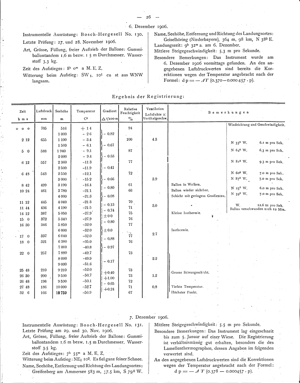Die von der K. B. Meteorologischen Centralstation im Jahre 1906 veranstalteten Registrierballonfahrten...