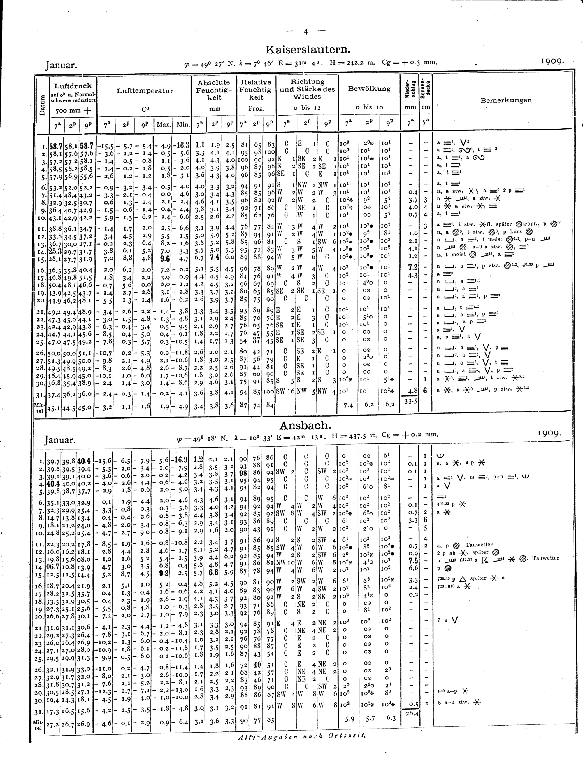 Tägliche Beobachtungen der Stationen II. Ordnung