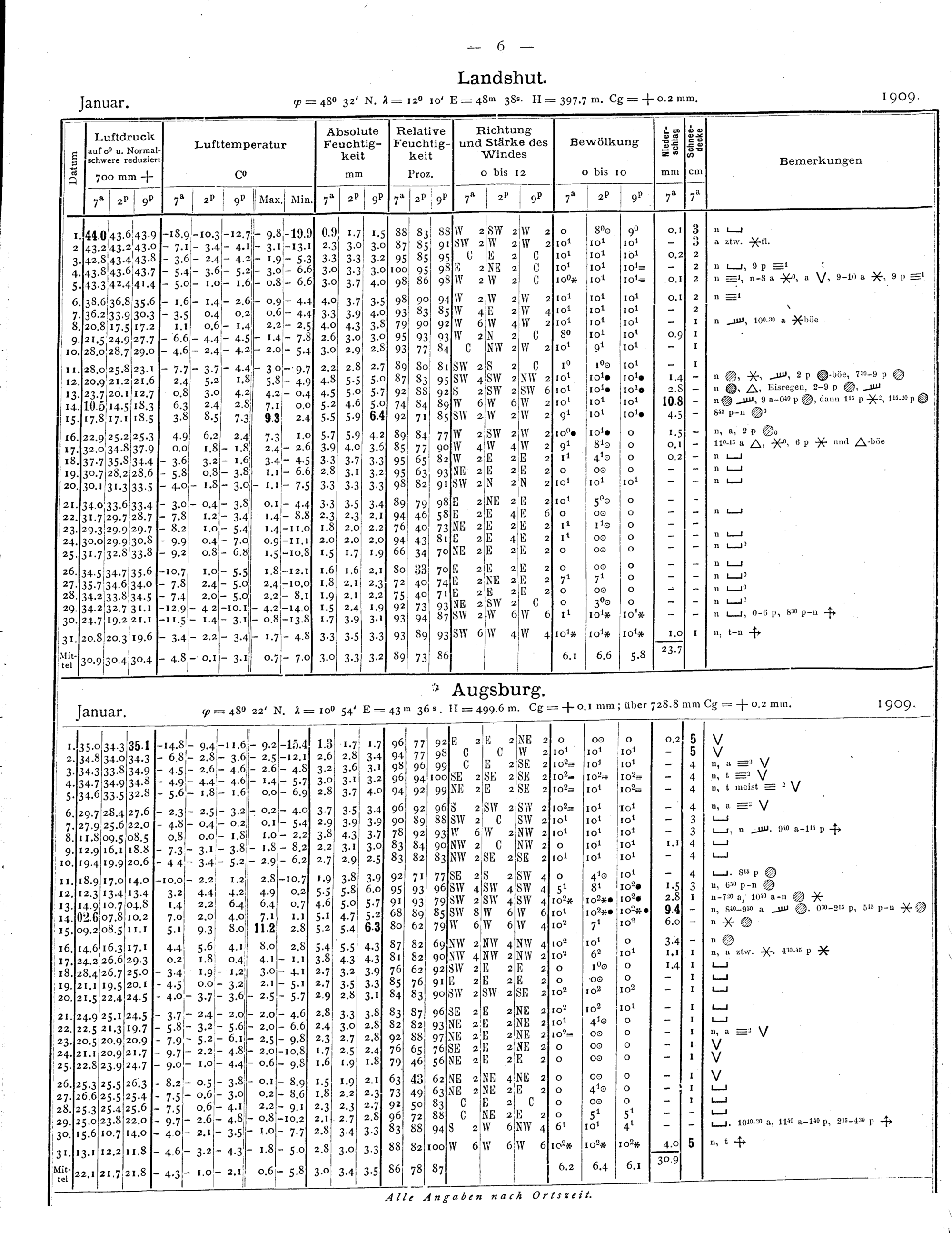 Tägliche Beobachtungen der Stationen II. Ordnung