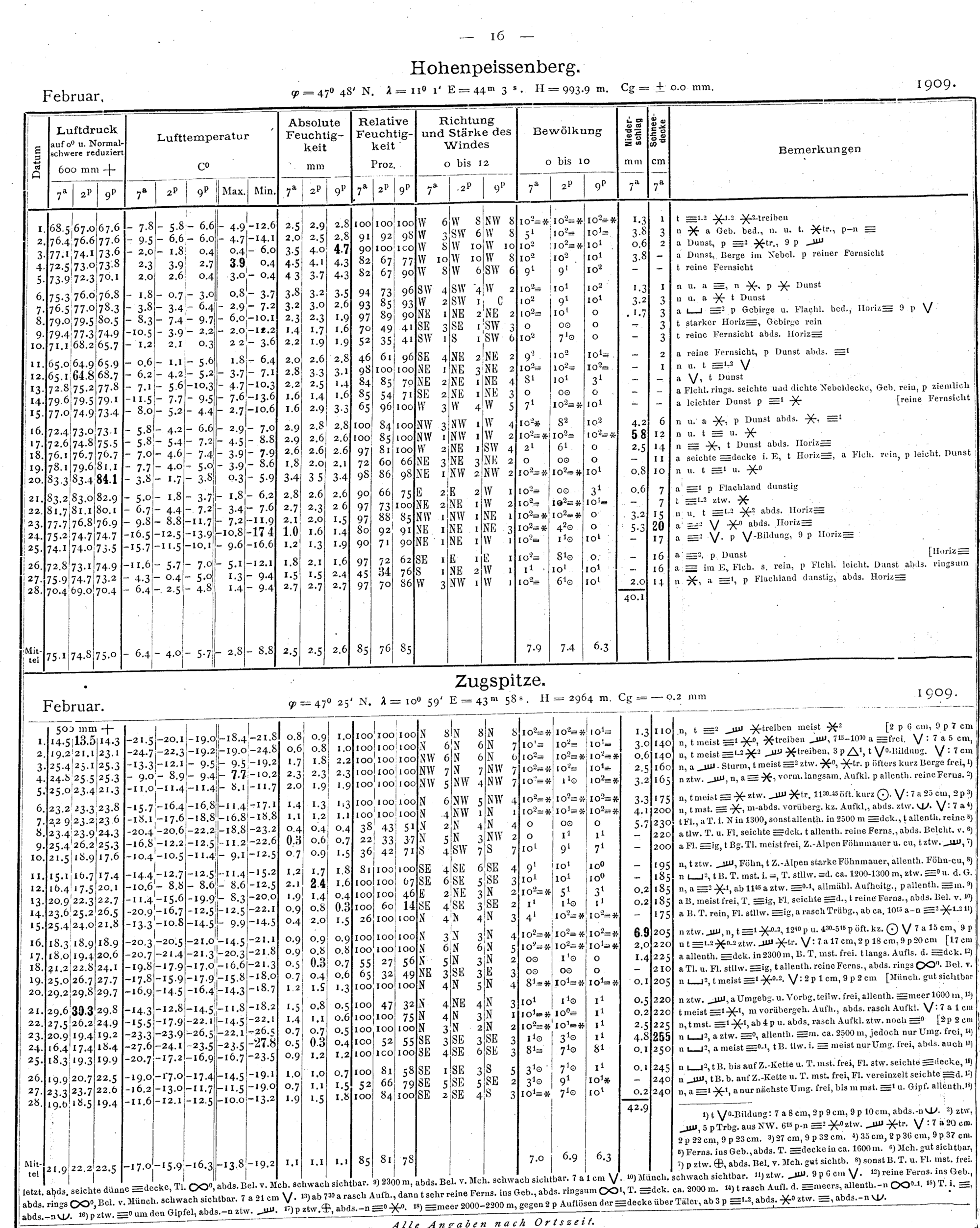 Tägliche Beobachtungen der Stationen II. Ordnung