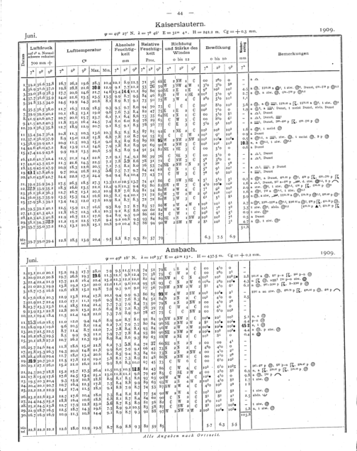 Tägliche Beobachtungen der Stationen II. Ordnung
