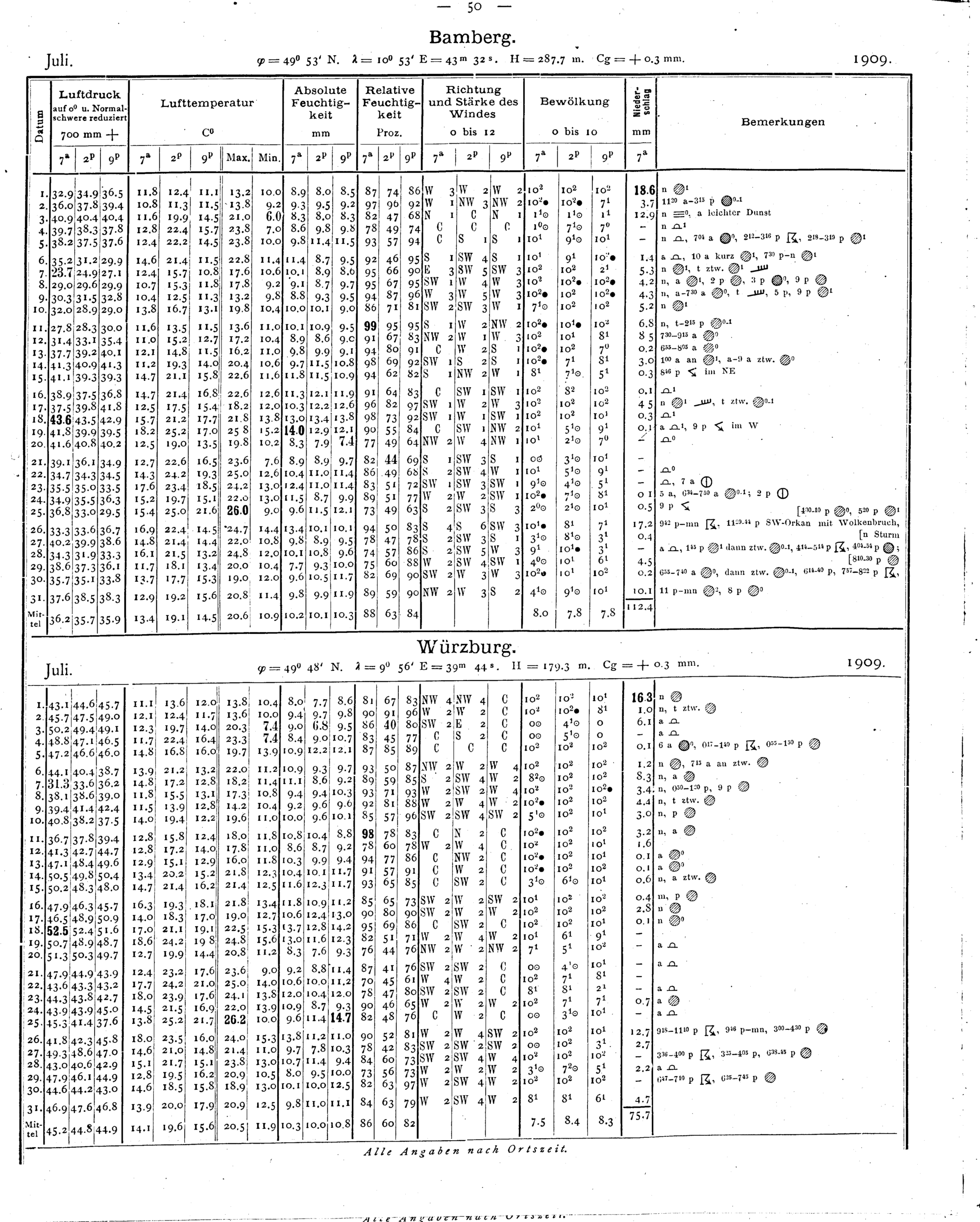 Tägliche Beobachtungen der Stationen II. Ordnung