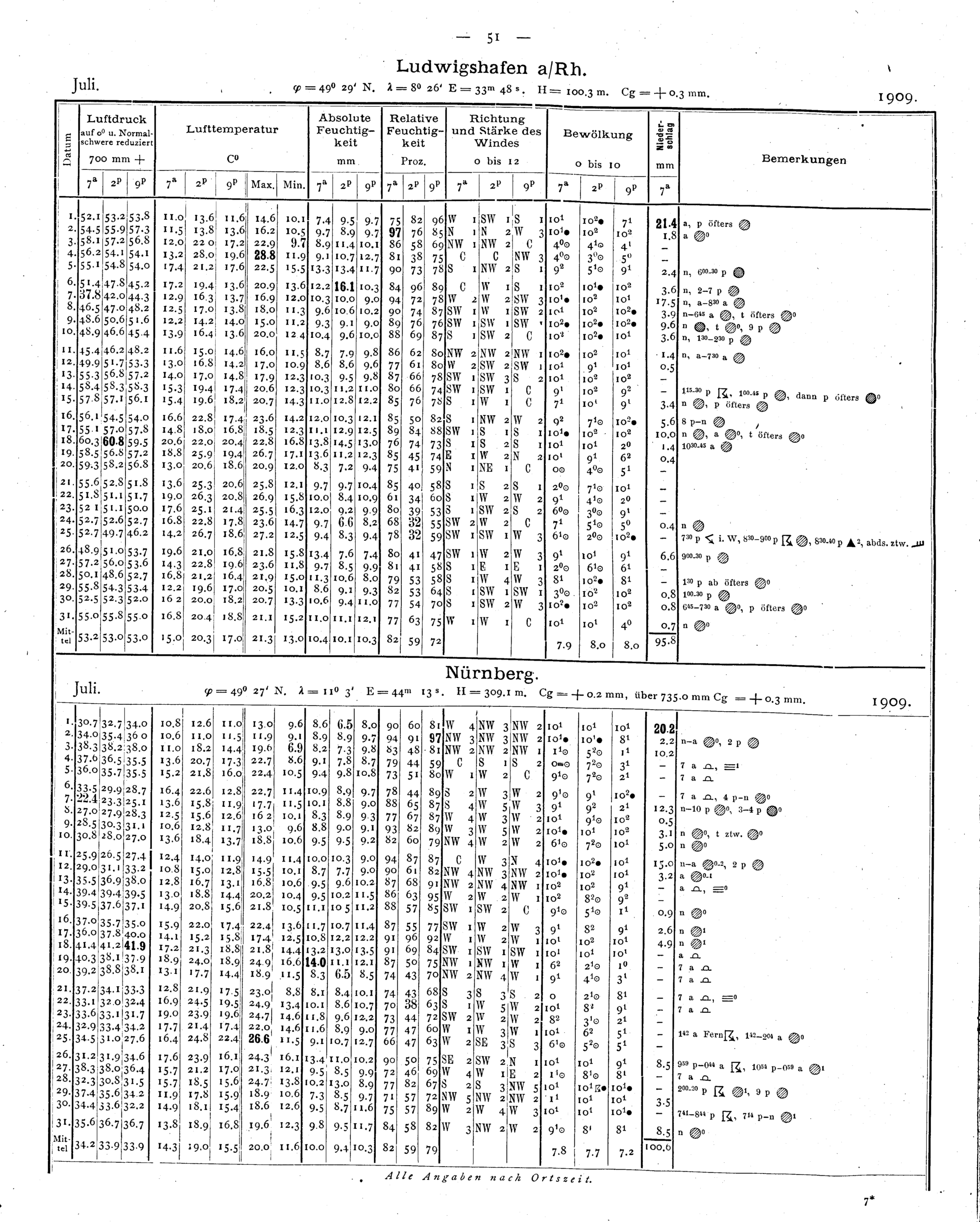 Tägliche Beobachtungen der Stationen II. Ordnung