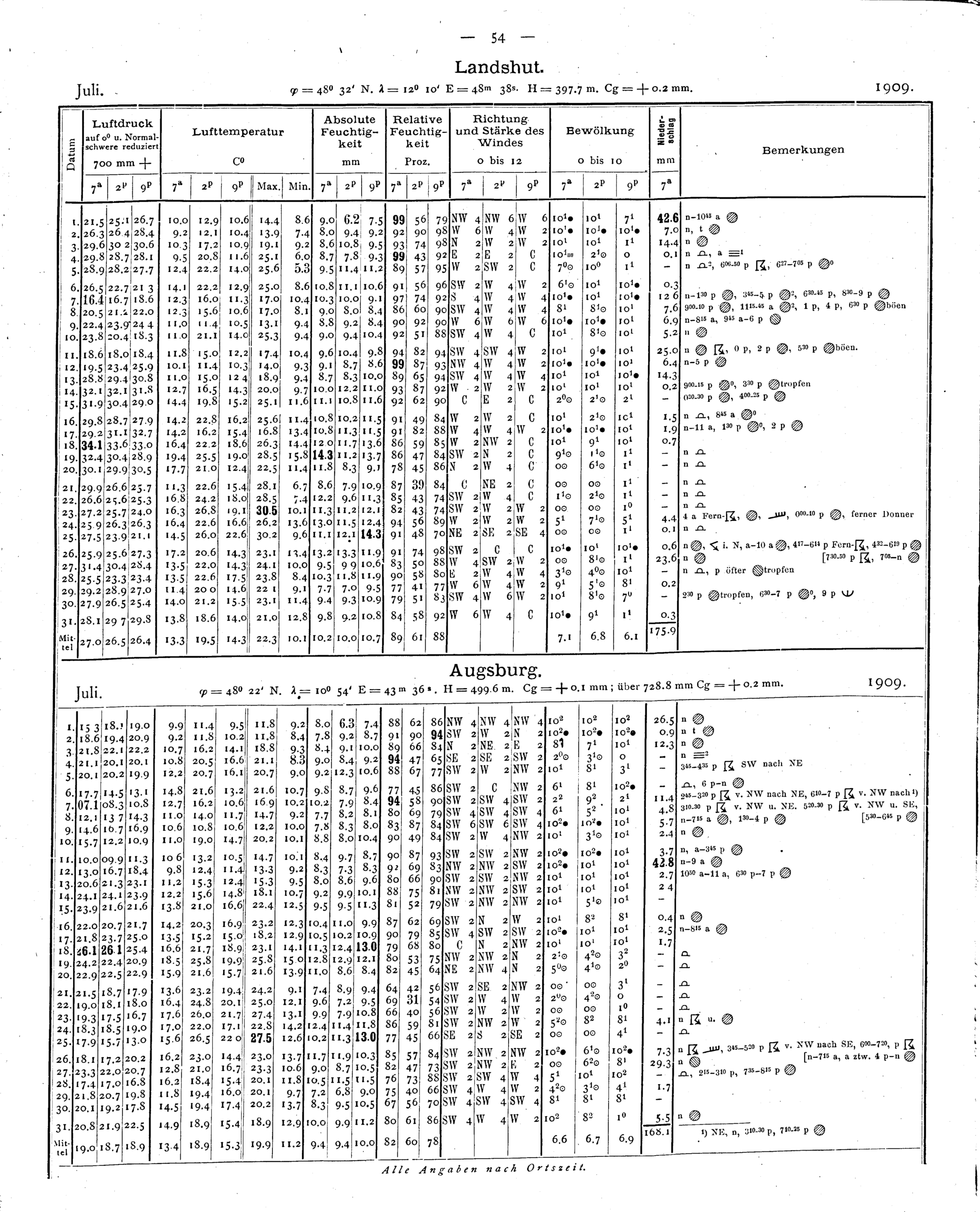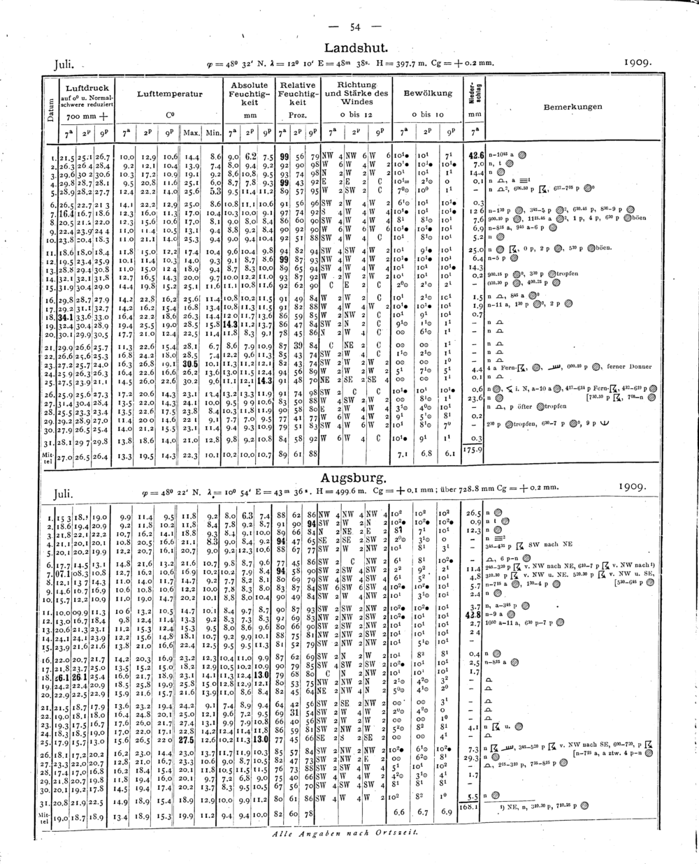 Beobachtungen der meteorologischen Stationen im Königreich Bayern
