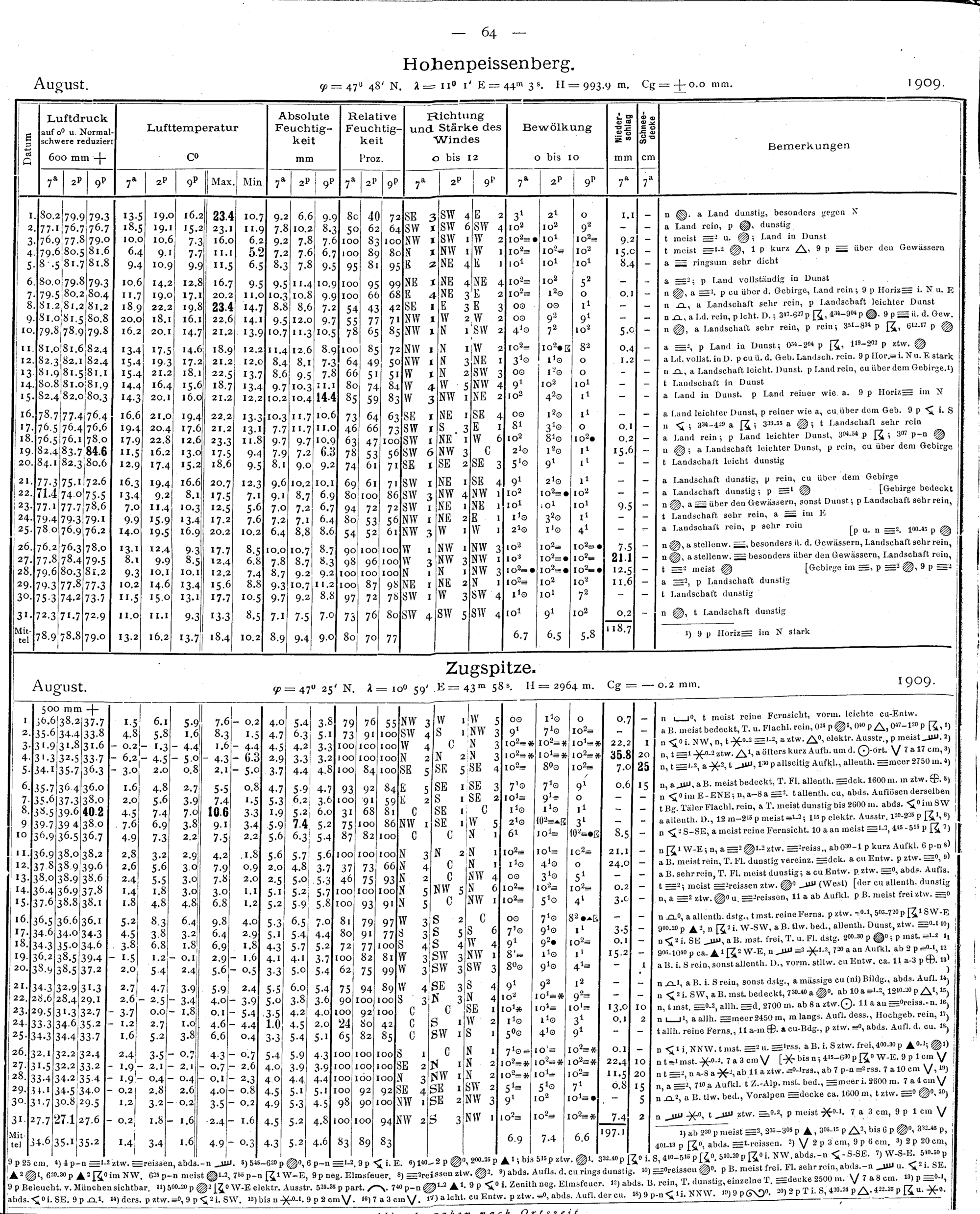Tägliche Beobachtungen der Stationen II. Ordnung