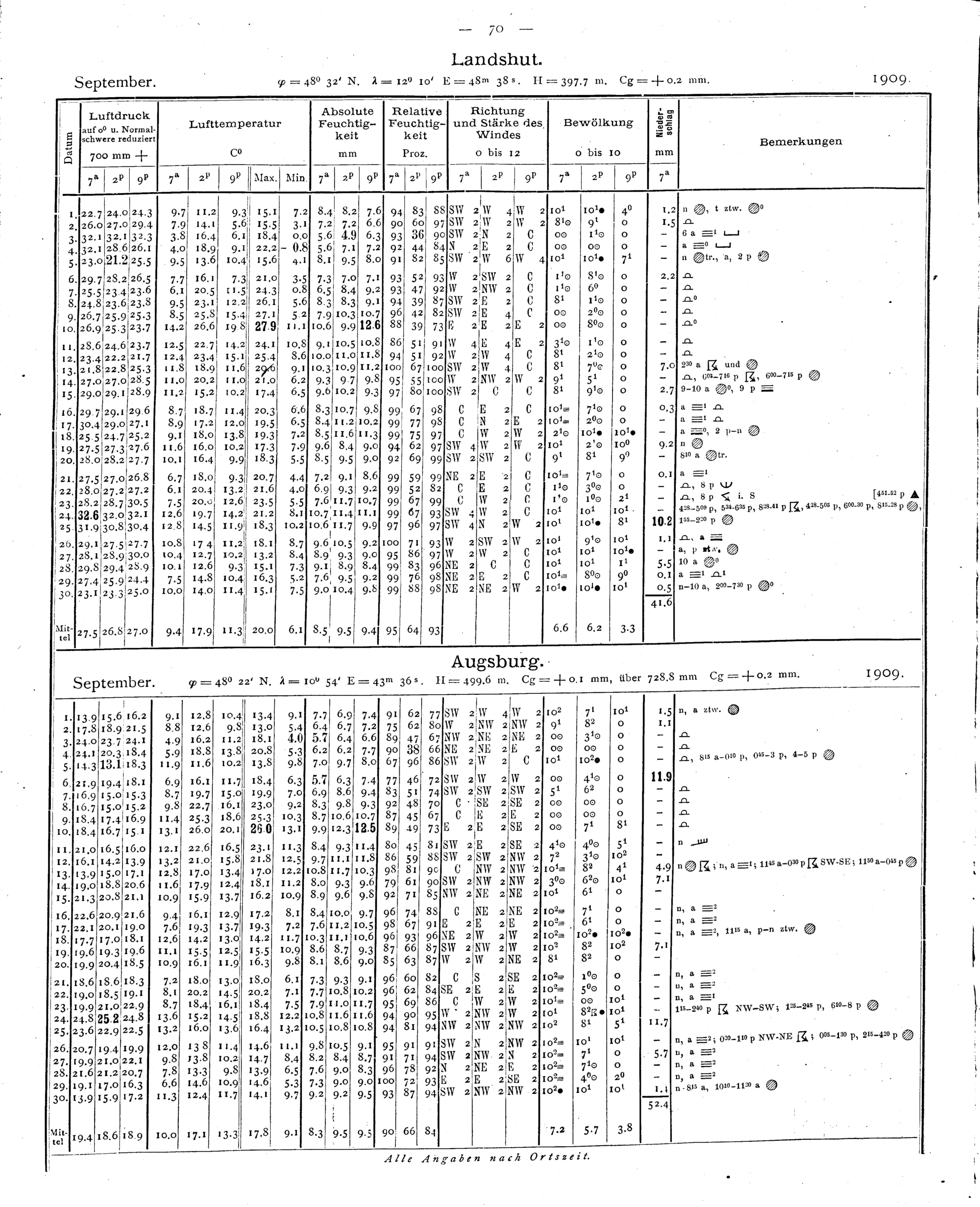 Tägliche Beobachtungen der Stationen II. Ordnung