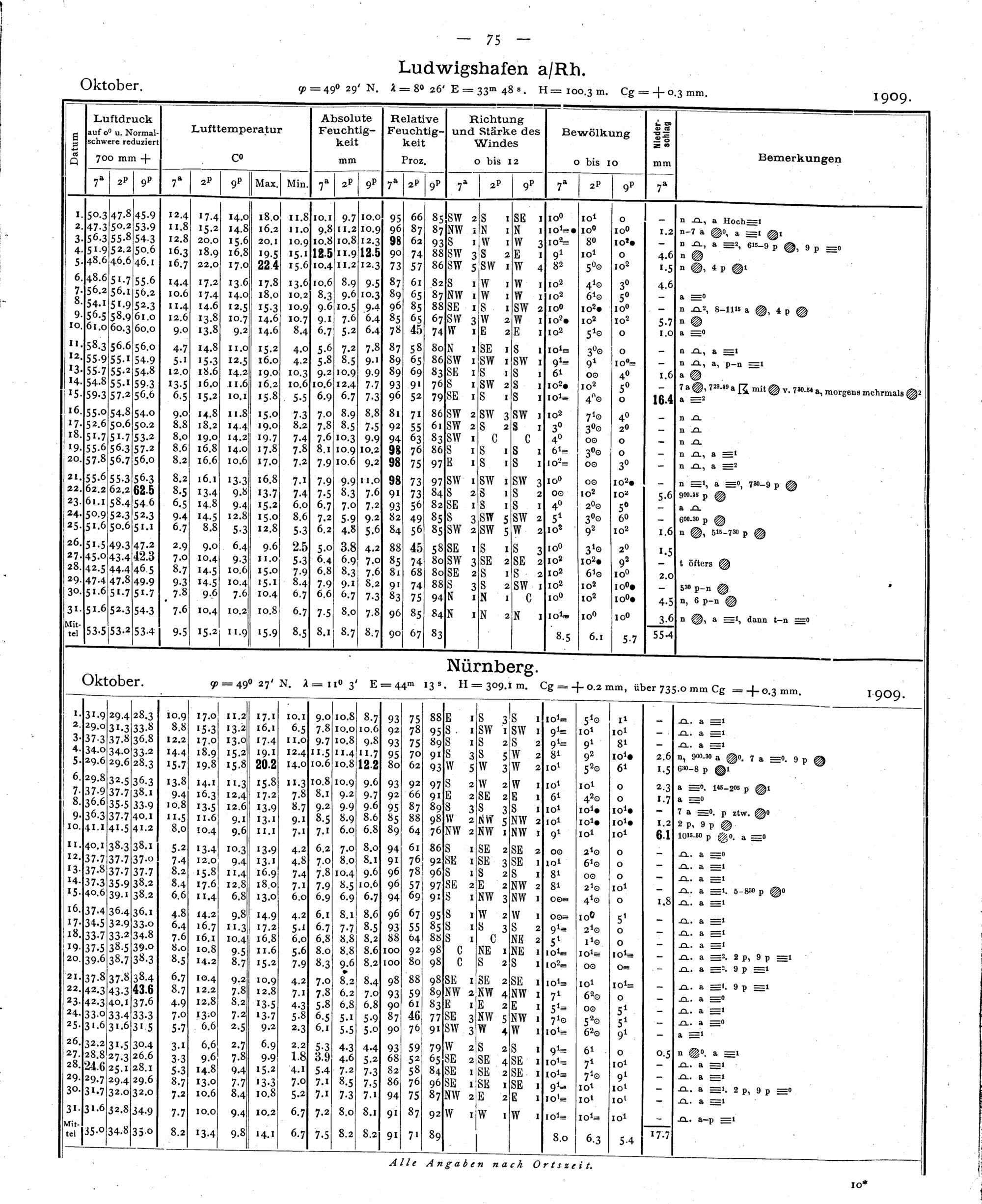 Tägliche Beobachtungen der Stationen II. Ordnung