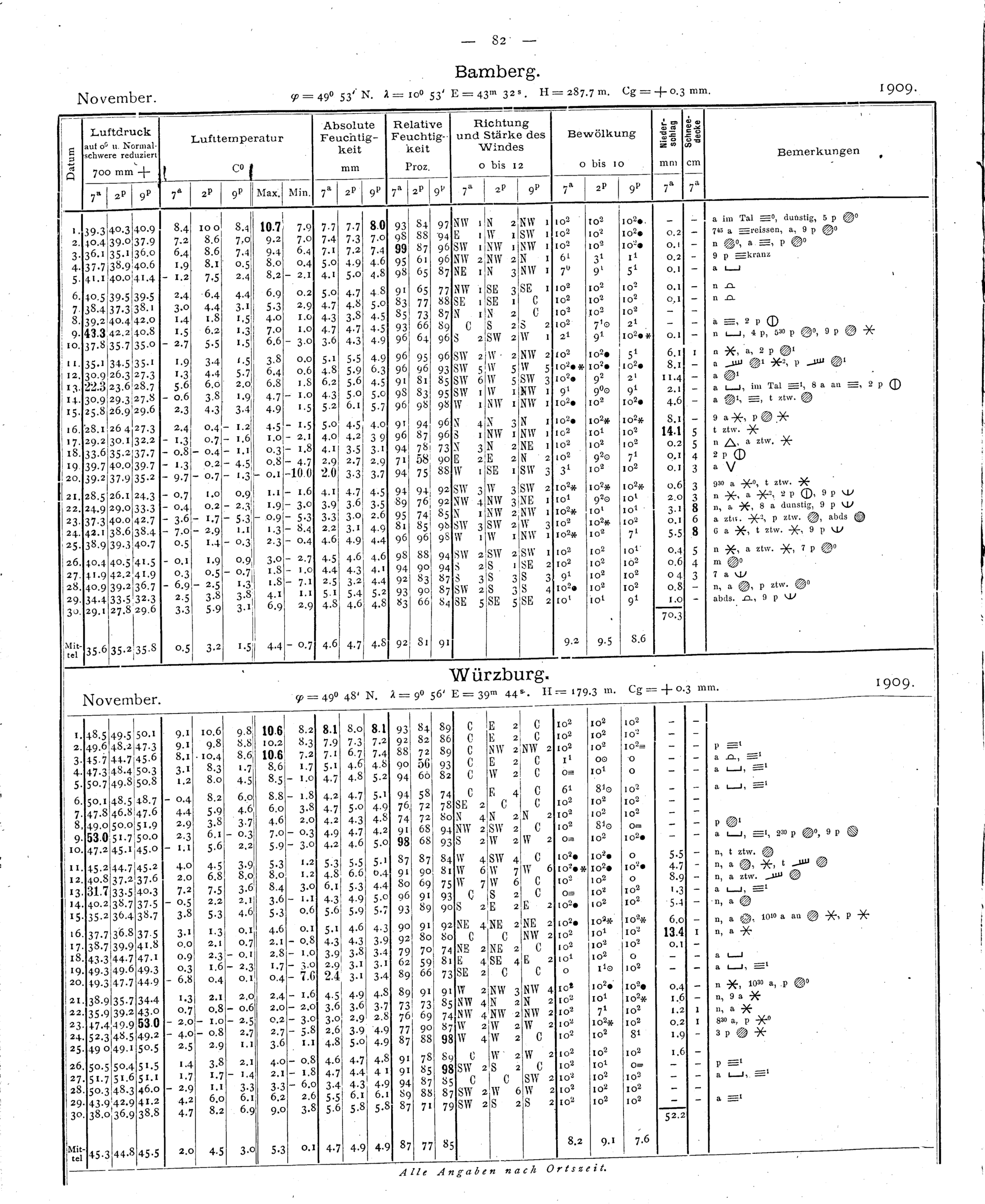Tägliche Beobachtungen der Stationen II. Ordnung