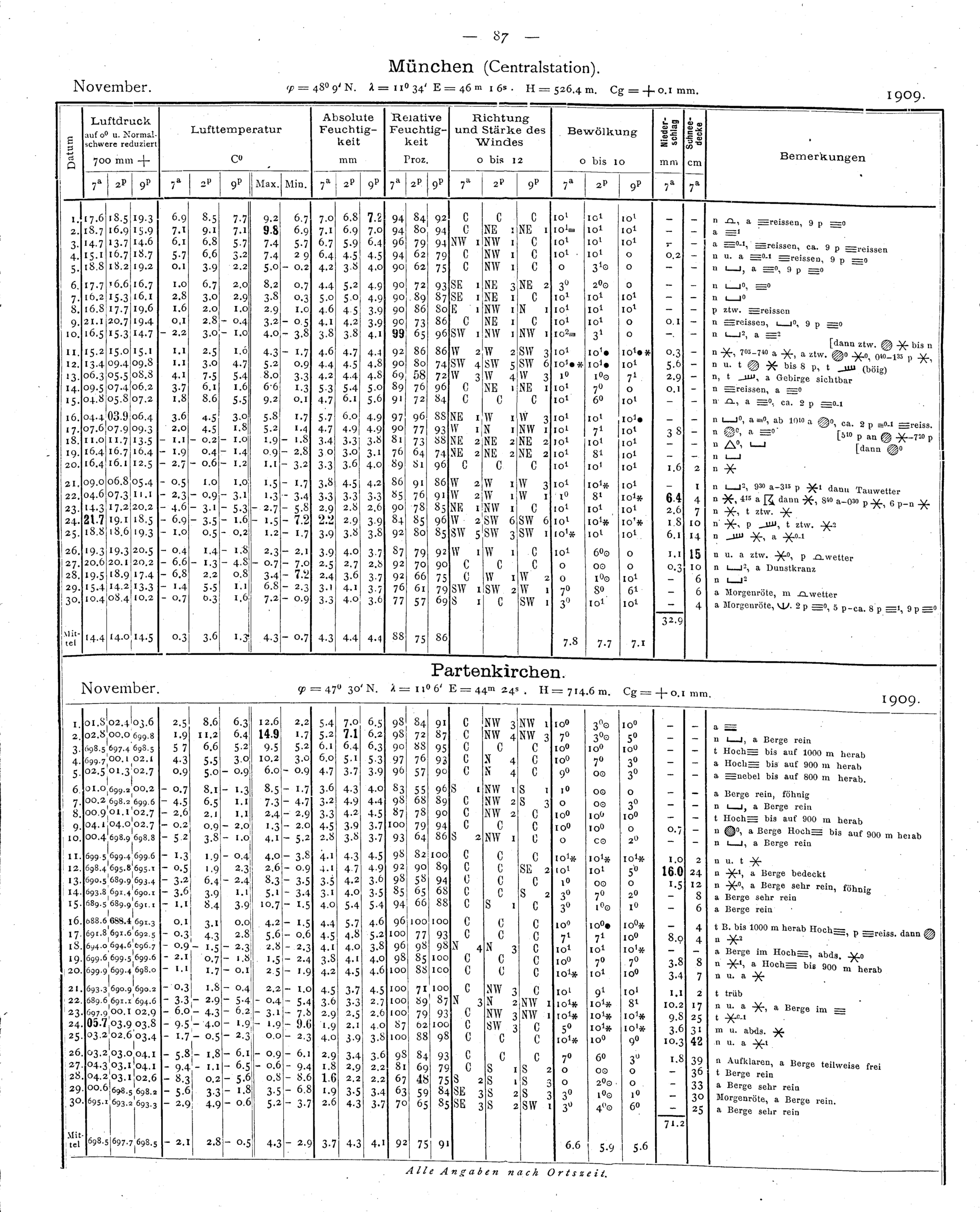 Tägliche Beobachtungen der Stationen II. Ordnung