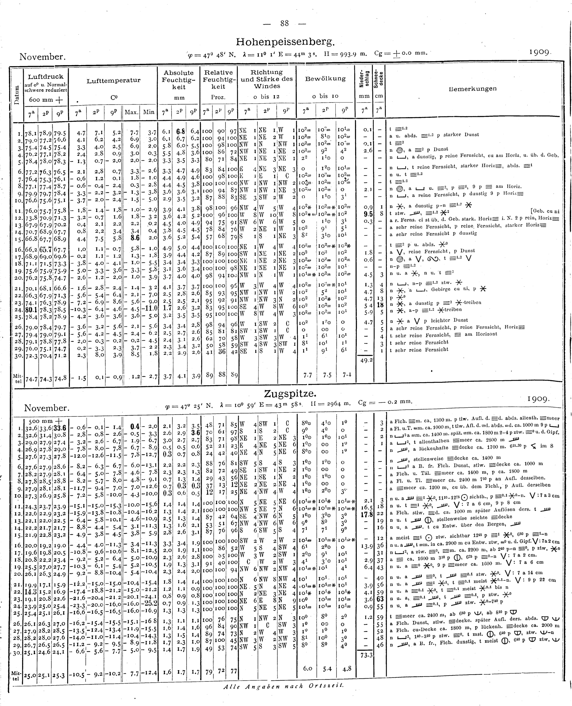 Tägliche Beobachtungen der Stationen II. Ordnung