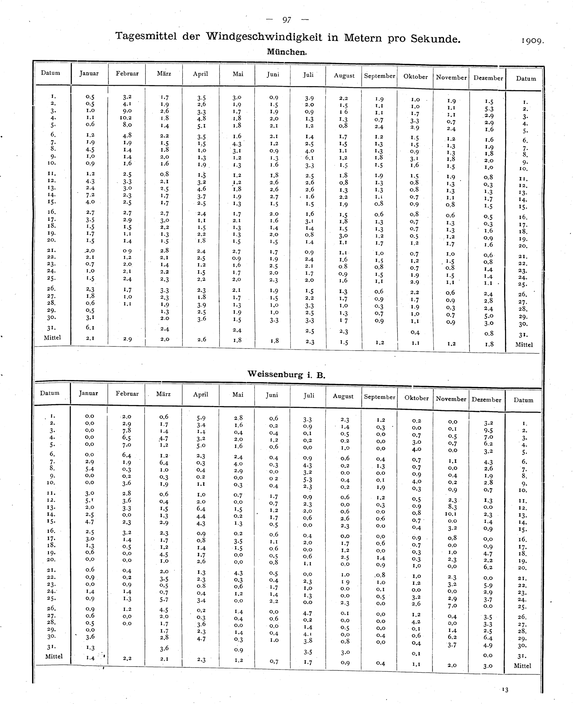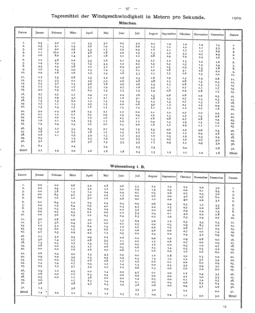 Tagesmittel der Windgeschwindigkeiten in Metern pro Sekunde