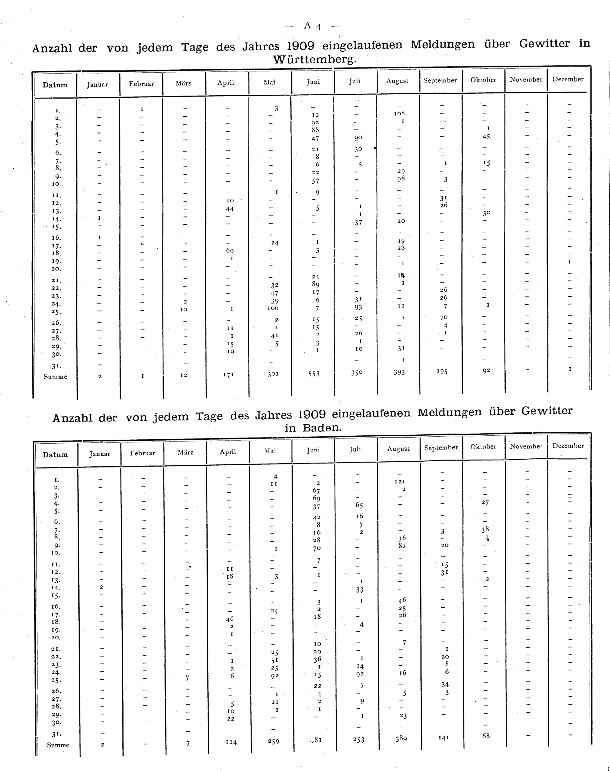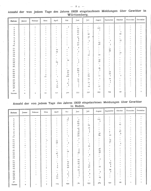 Beobachtungen über Gewitter in Bayern, Württemberg, Baden und Hohenzollern während...