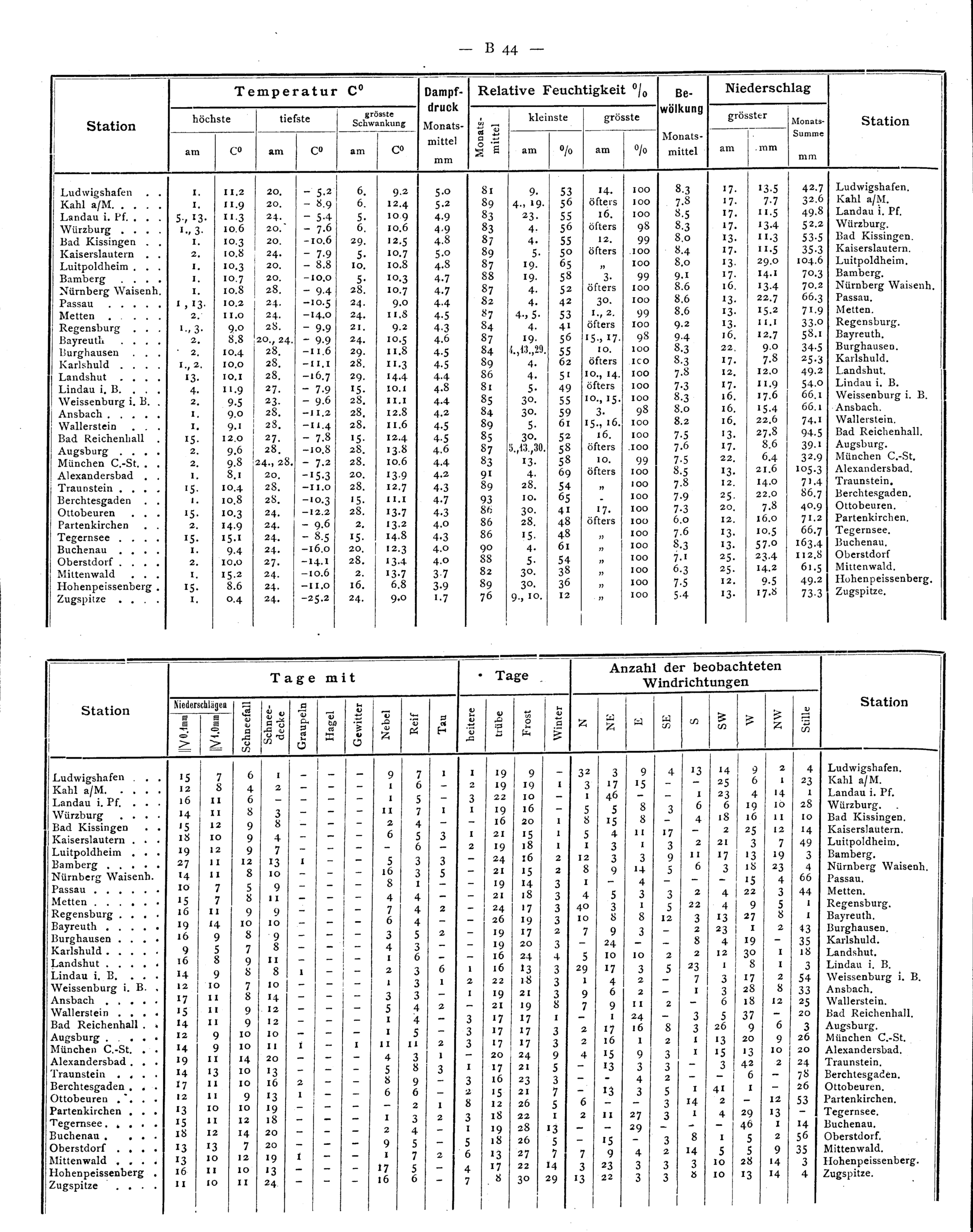 Beobachtungen der meteorologischen Stationen im Königreich Bayern