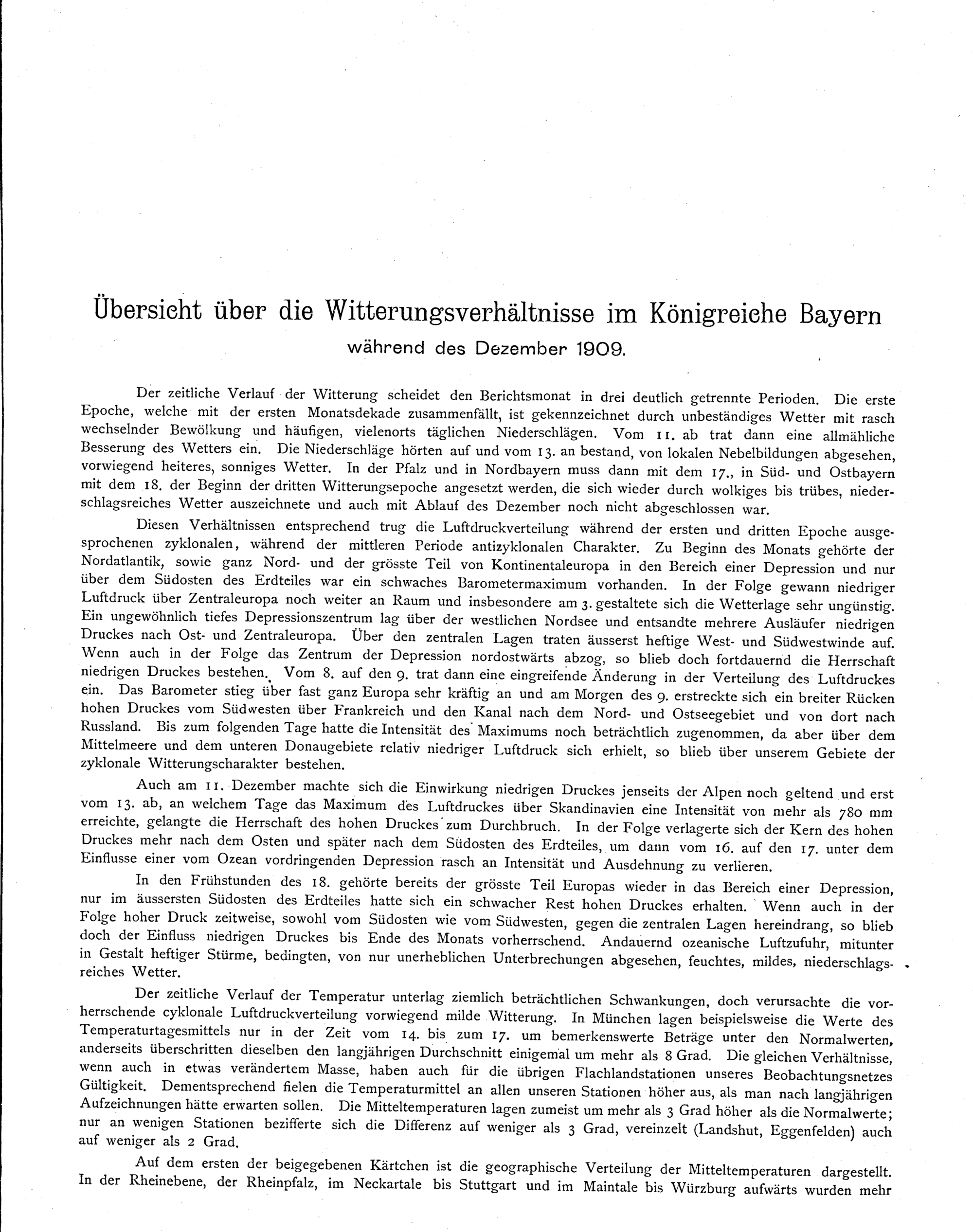 Übersicht über die Witterungsverhältnisse im Königreich Bayern während des Januar...