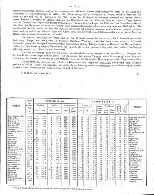 Übersicht über die Witterungsverhältnisse im Königreich Bayern während des Januar...
