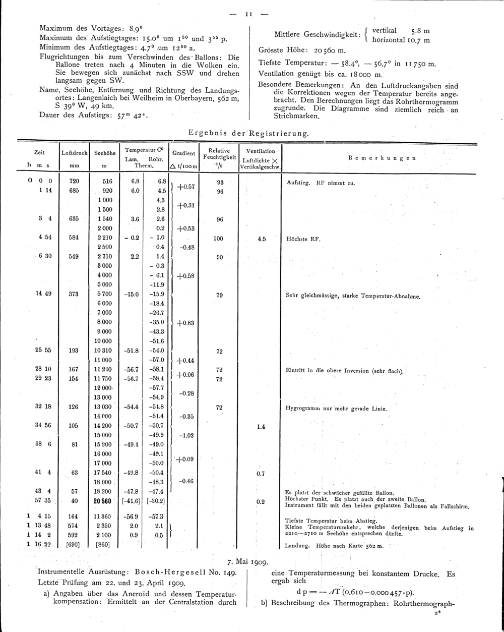 Die von der K. B. Meteorologischen Centralstation im Jahre 1909 veranstalteten Registrierballonfahrten...