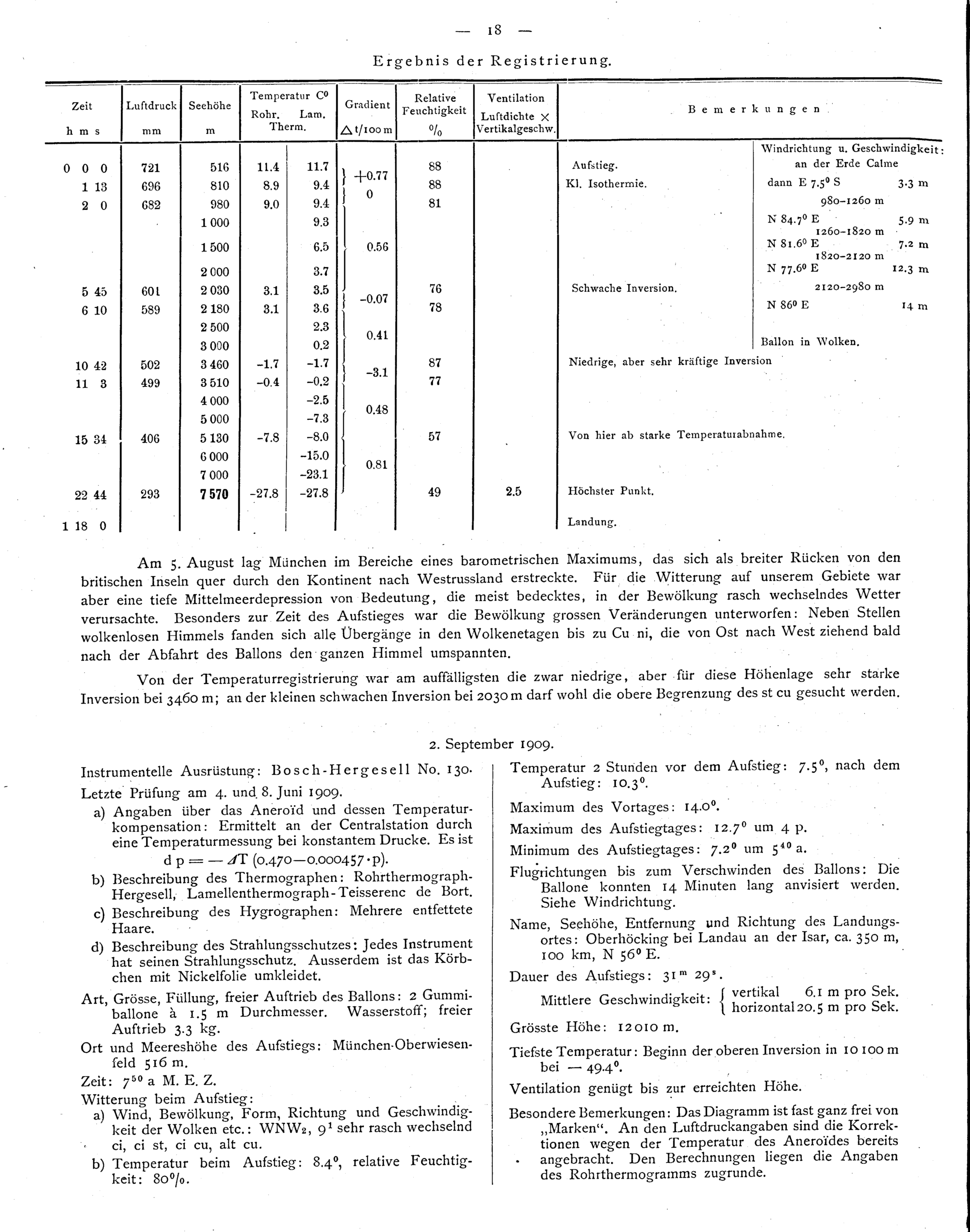 Die von der K. B. Meteorologischen Centralstation im Jahre 1909 veranstalteten Registrierballonfahrten...