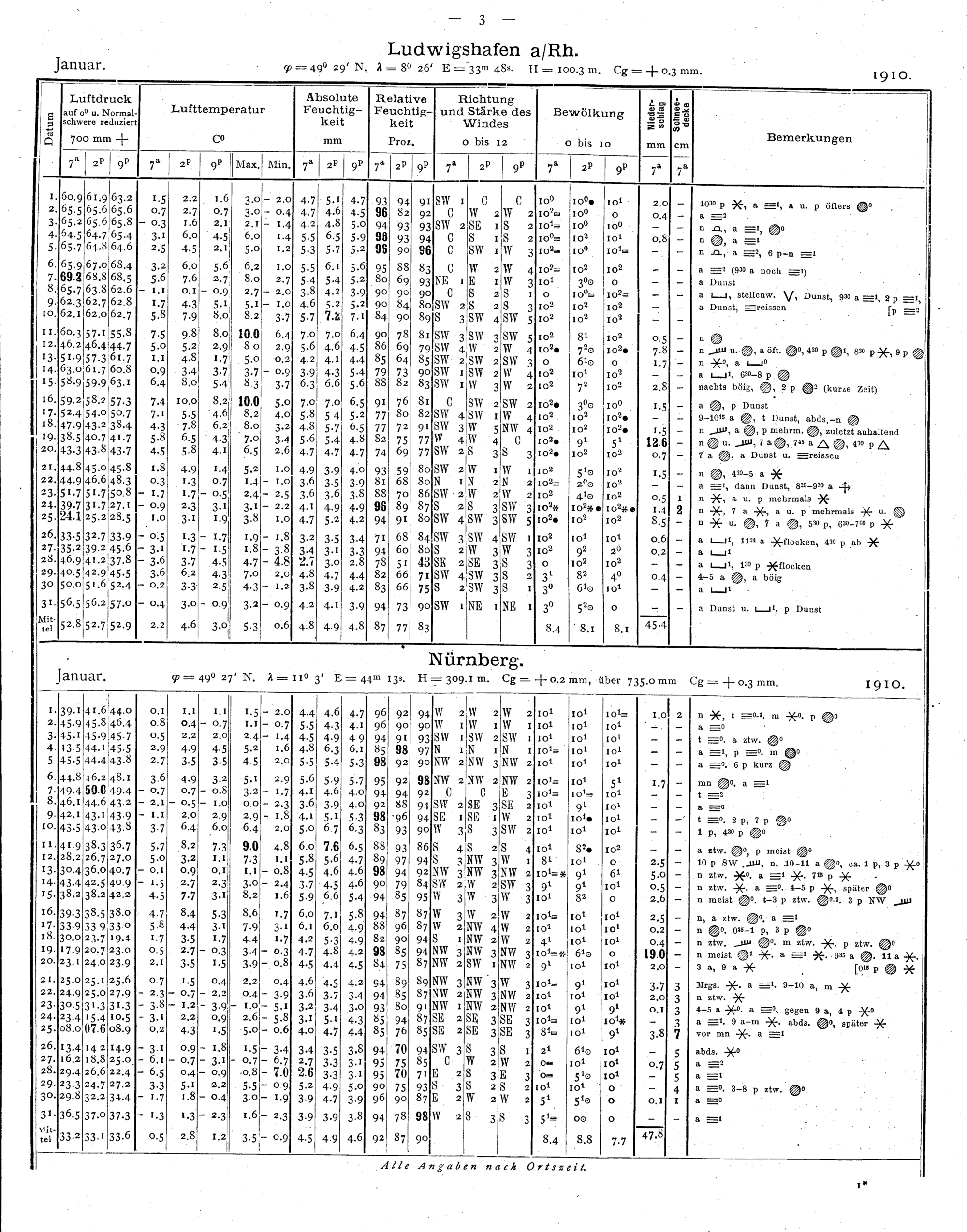 Tägliche Beobachtungen der Stationen II. Ordnung