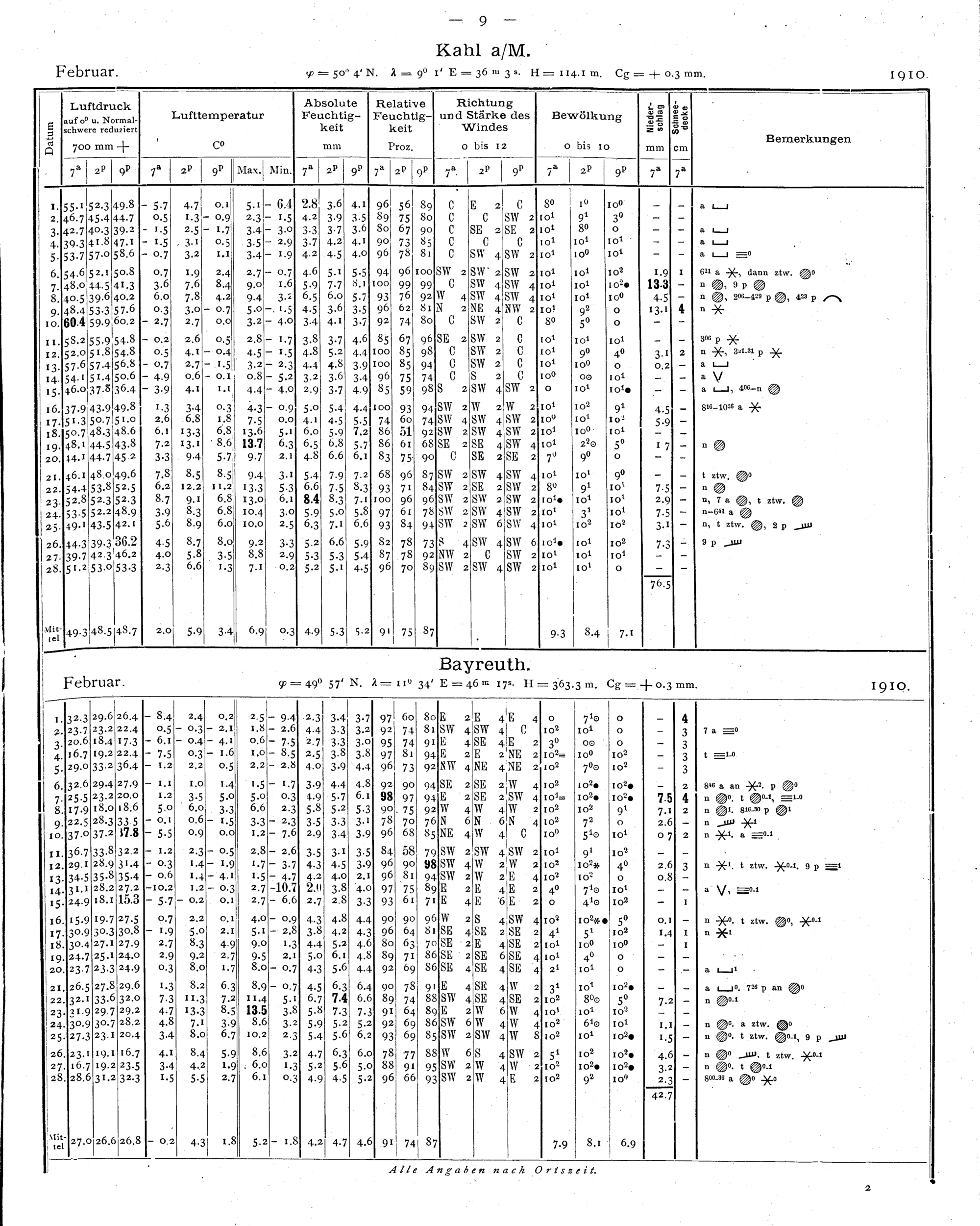 Tägliche Beobachtungen der Stationen II. Ordnung