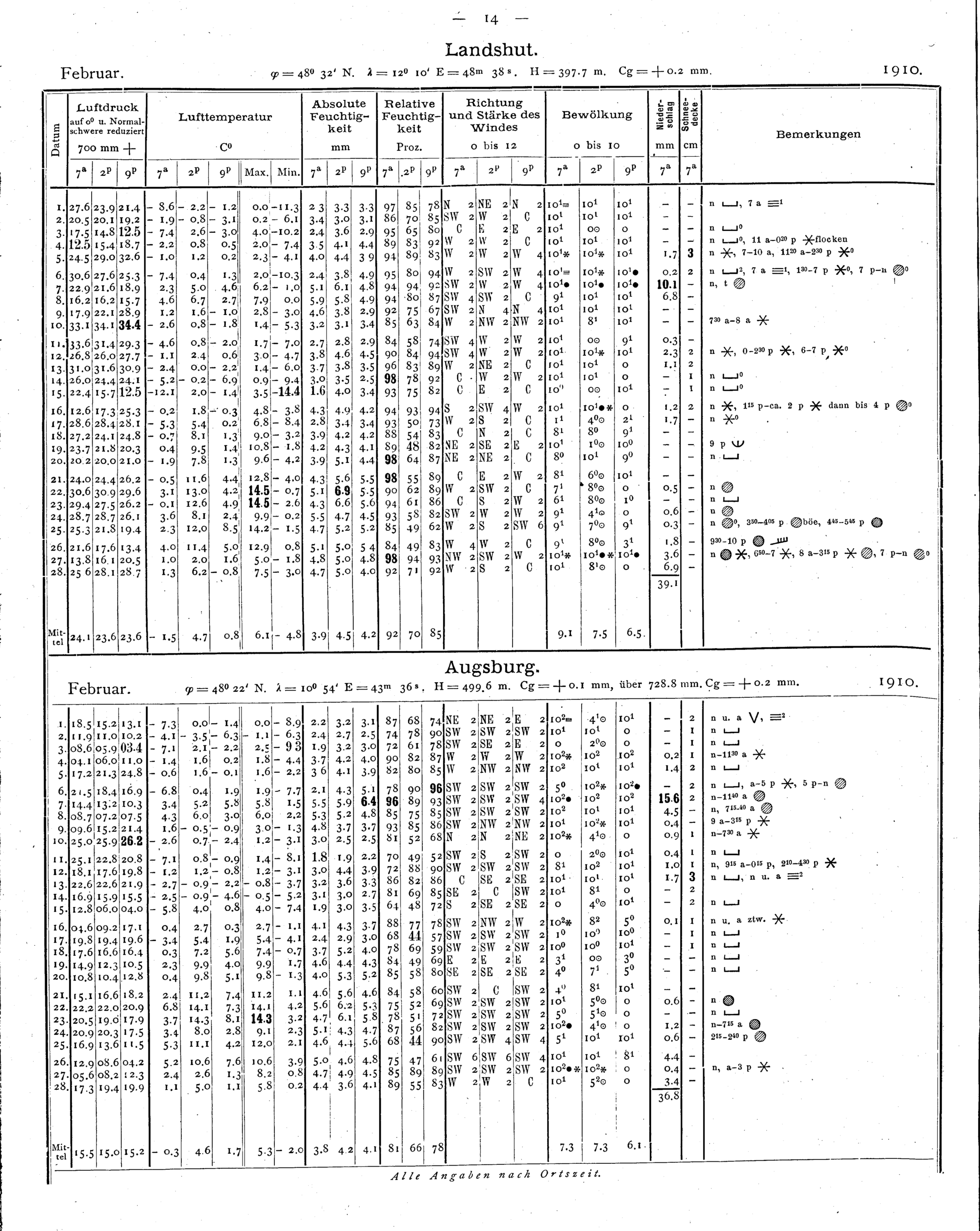 Tägliche Beobachtungen der Stationen II. Ordnung