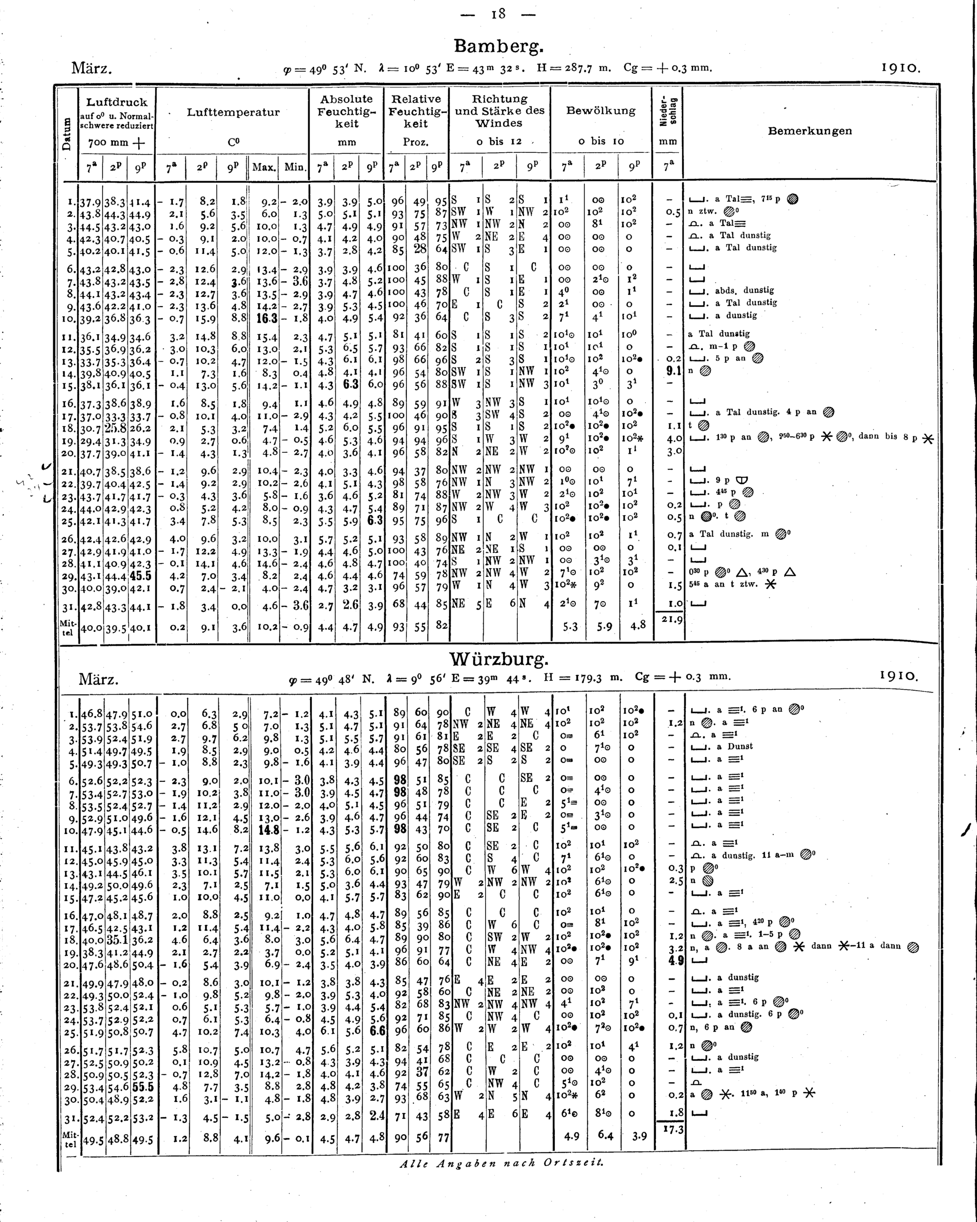 Tägliche Beobachtungen der Stationen II. Ordnung