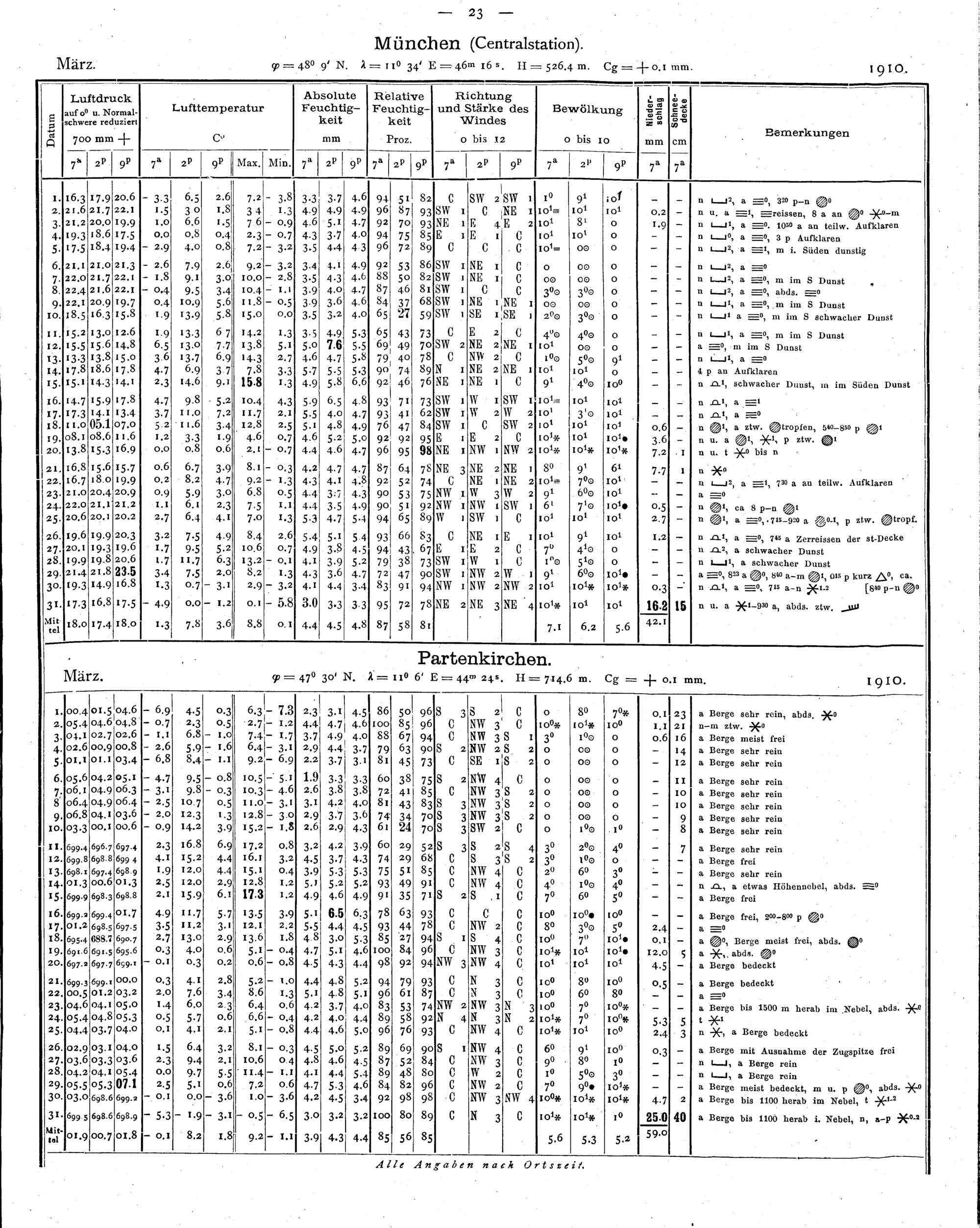 Tägliche Beobachtungen der Stationen II. Ordnung