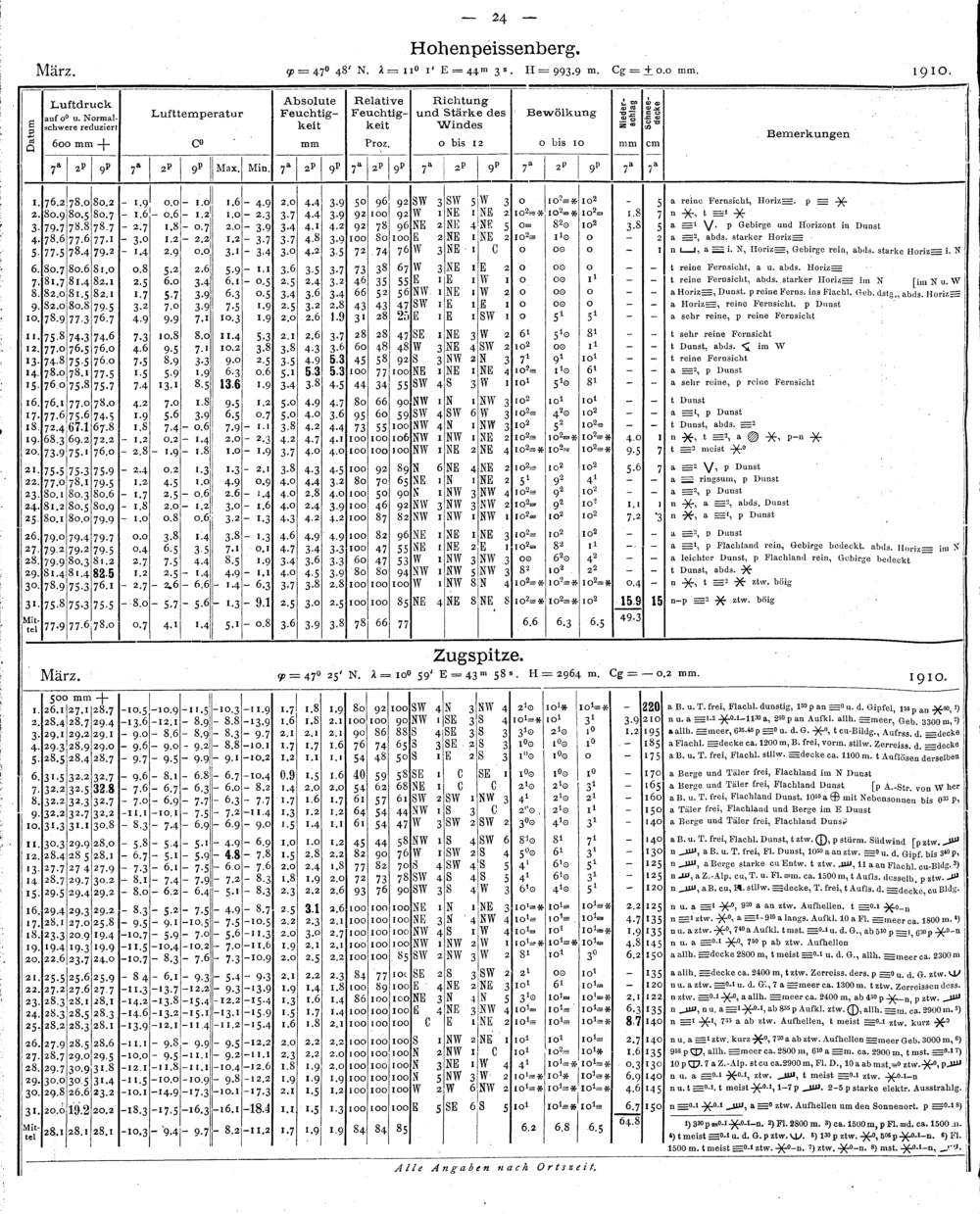 Tägliche Beobachtungen der Stationen II. Ordnung