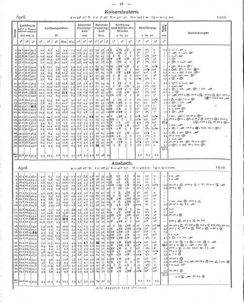 Tägliche Beobachtungen der Stationen II. Ordnung