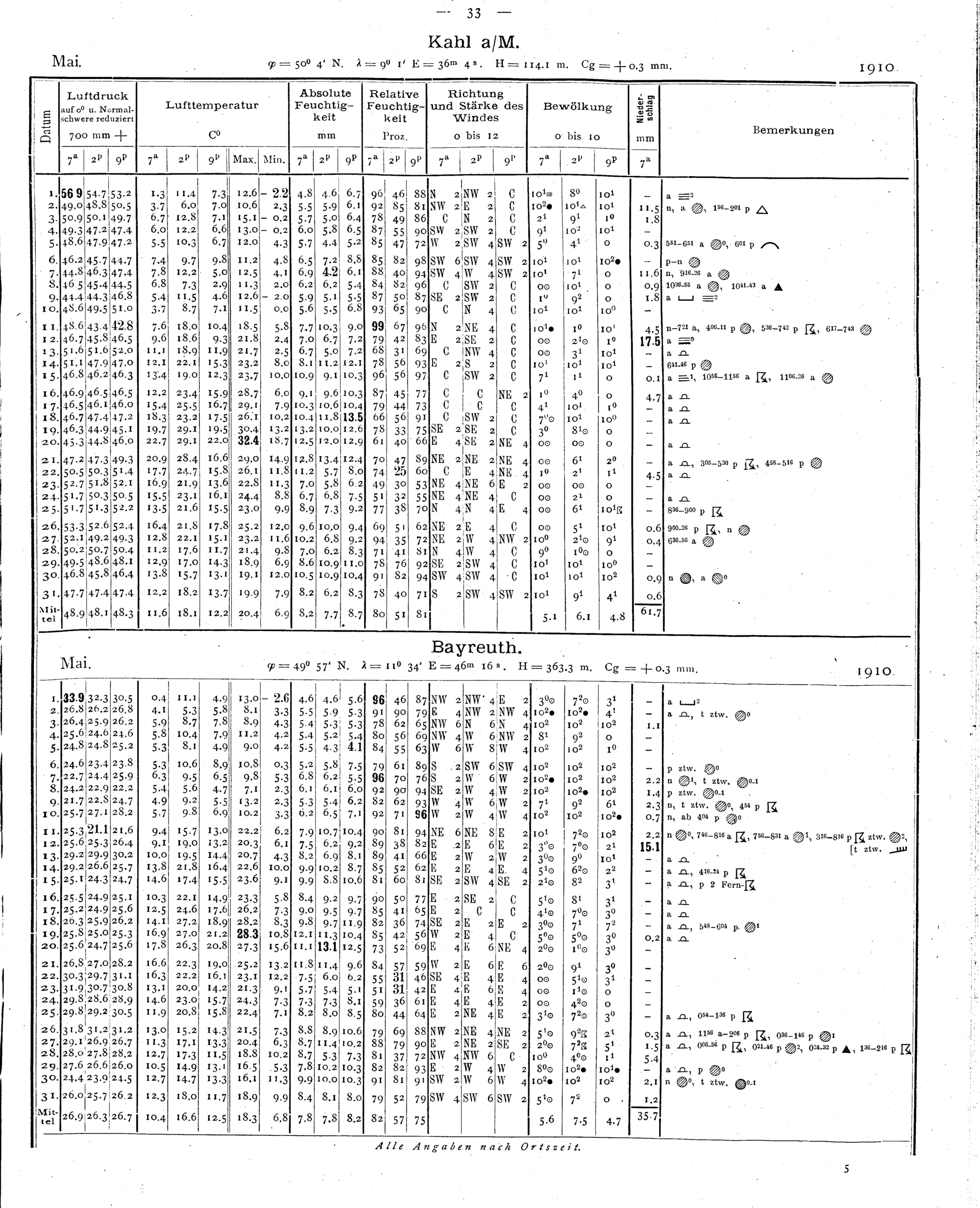 Tägliche Beobachtungen der Stationen II. Ordnung