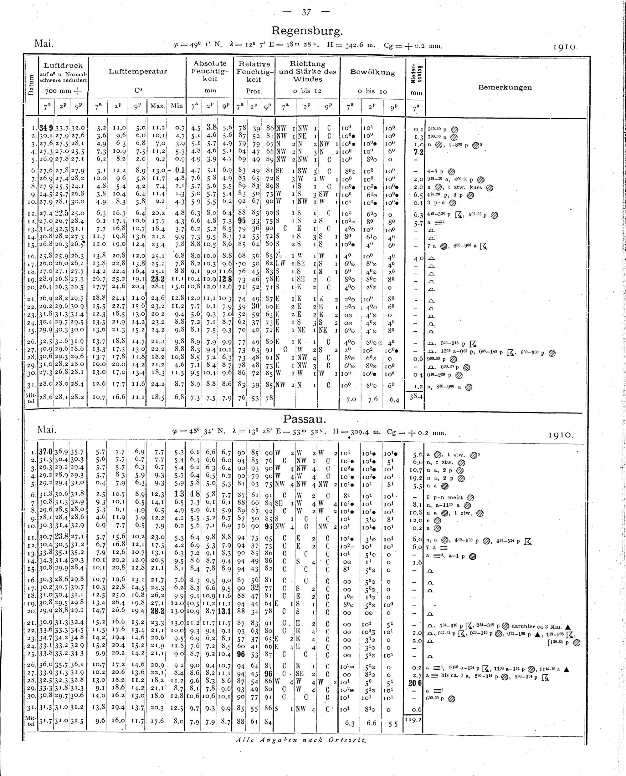Tägliche Beobachtungen der Stationen II. Ordnung