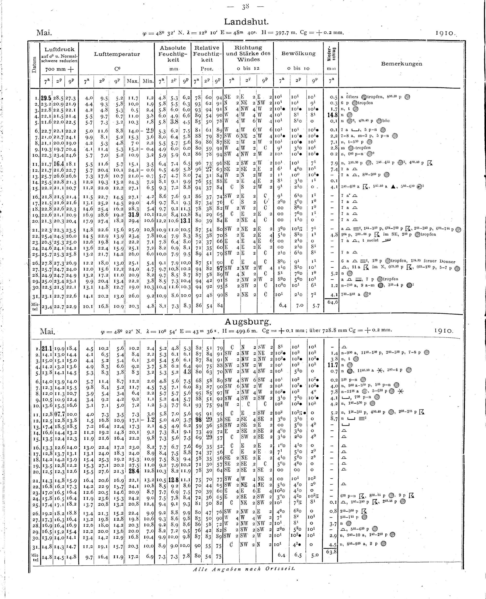 Tägliche Beobachtungen der Stationen II. Ordnung