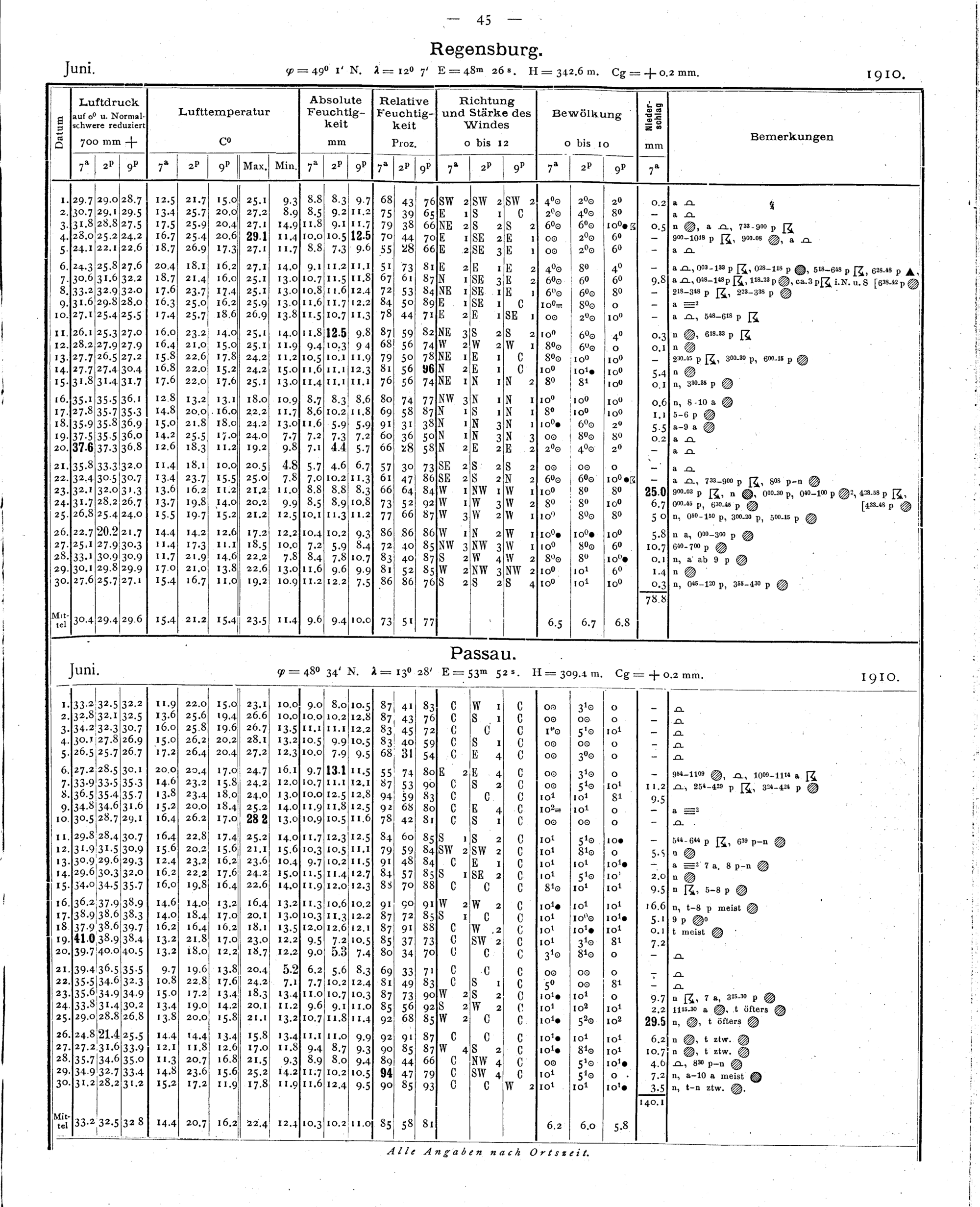 Tägliche Beobachtungen der Stationen II. Ordnung