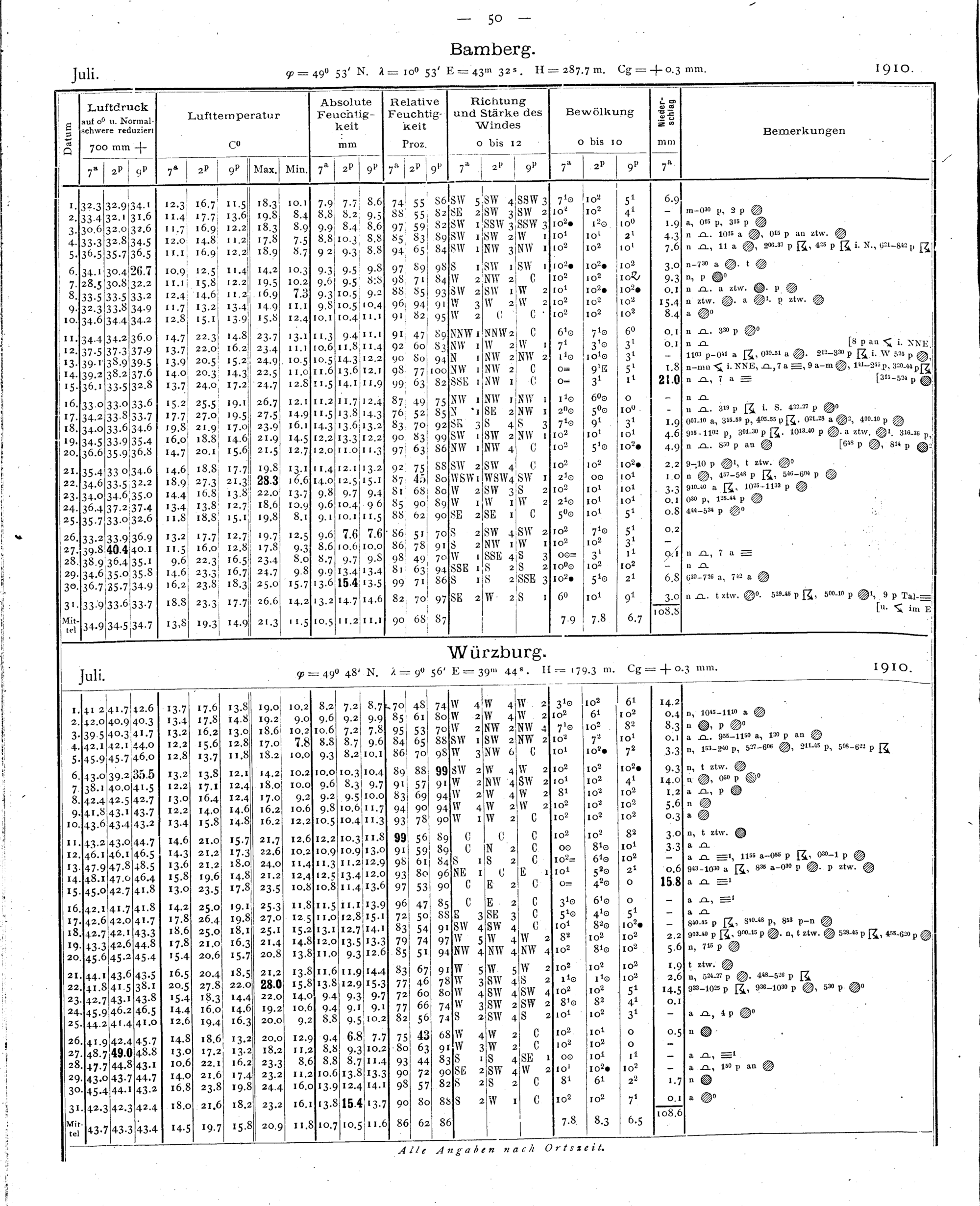 Tägliche Beobachtungen der Stationen II. Ordnung