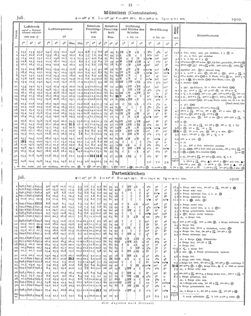 Tägliche Beobachtungen der Stationen II. Ordnung