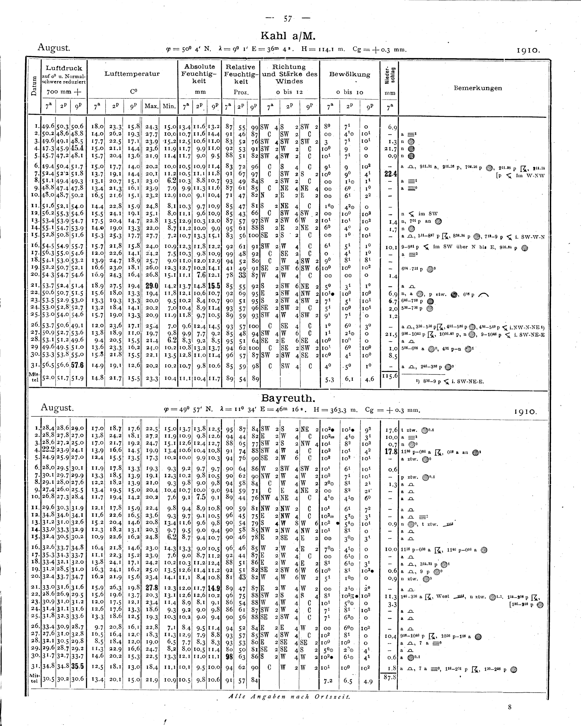 Tägliche Beobachtungen der Stationen II. Ordnung