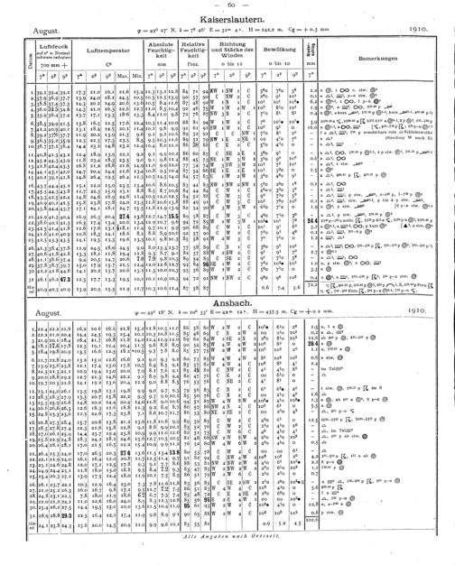 Tägliche Beobachtungen der Stationen II. Ordnung
