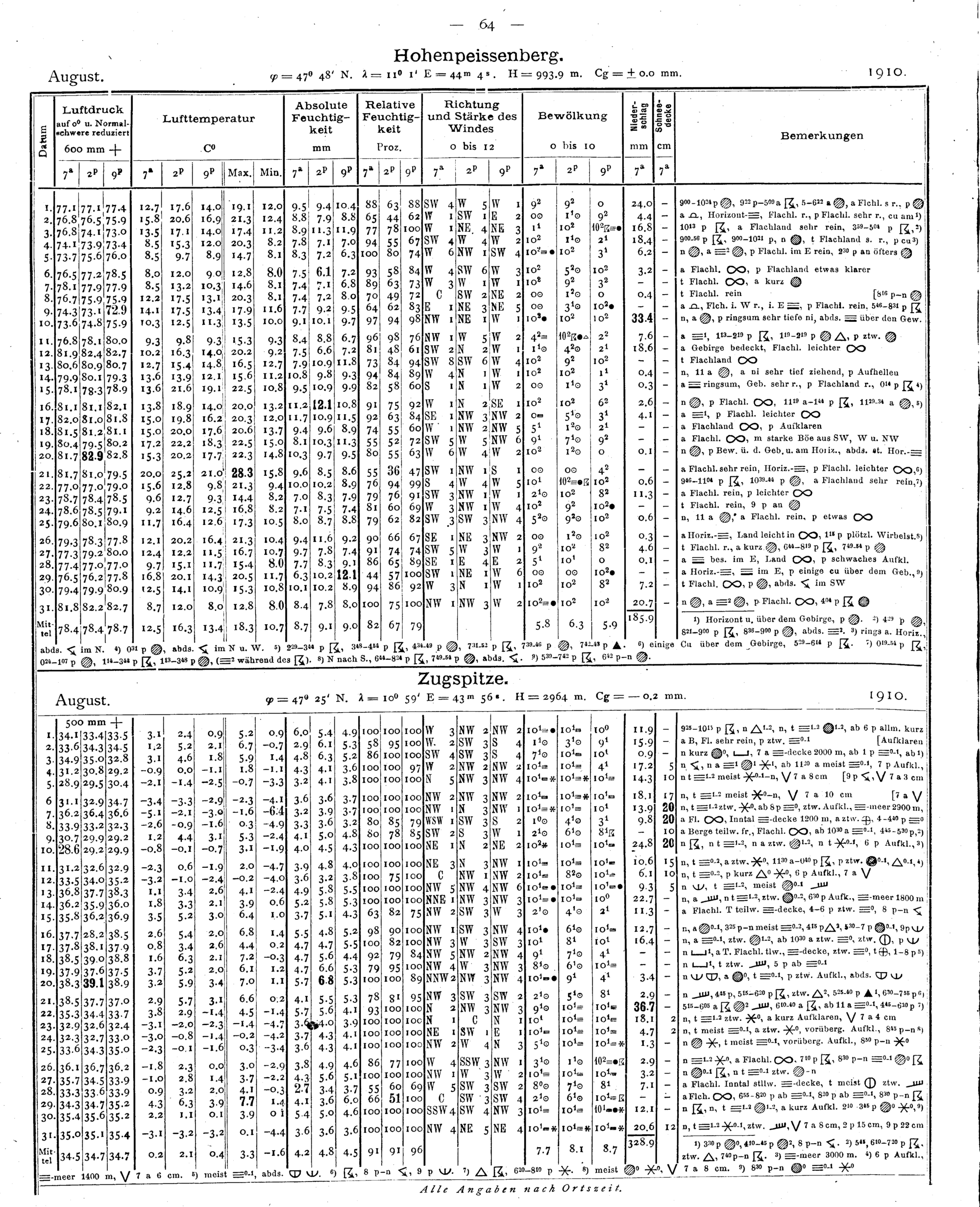 Tägliche Beobachtungen der Stationen II. Ordnung