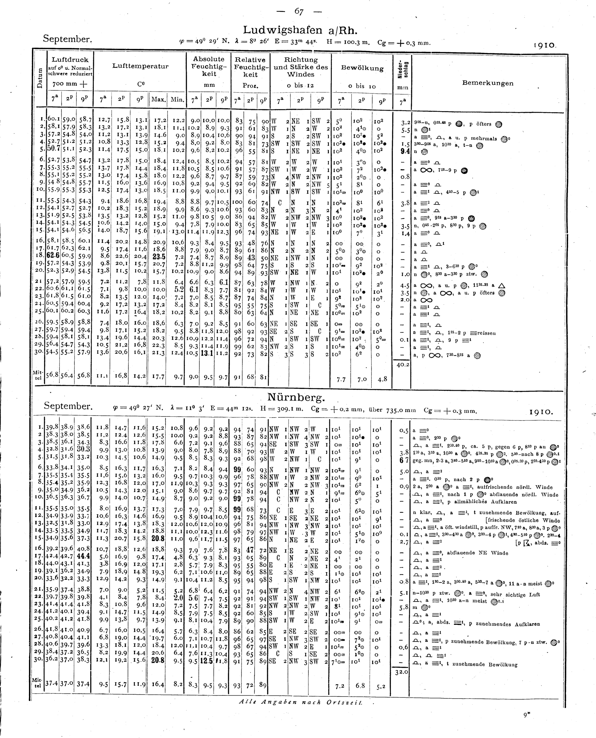 Tägliche Beobachtungen der Stationen II. Ordnung