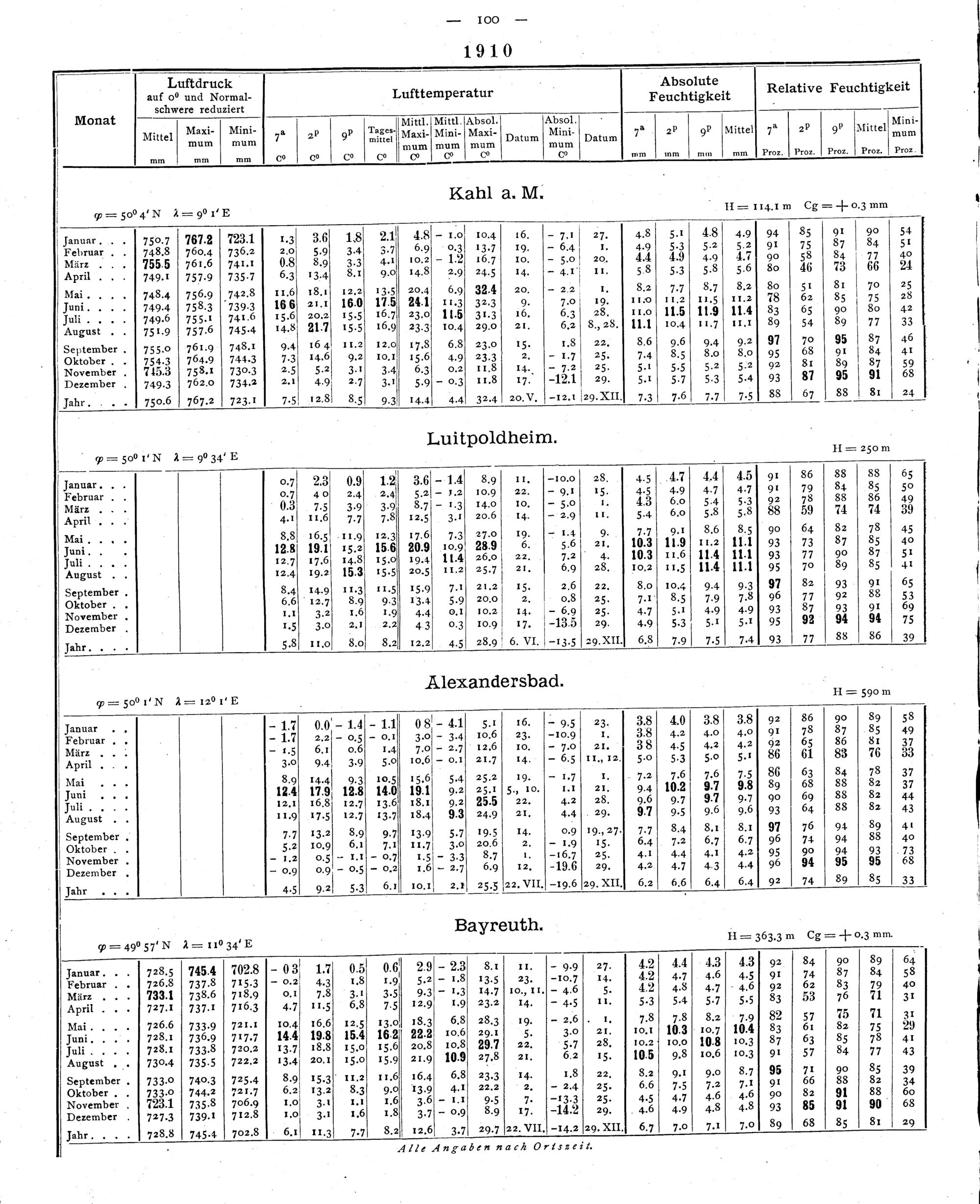 Monatliche und Jahres-Resultate