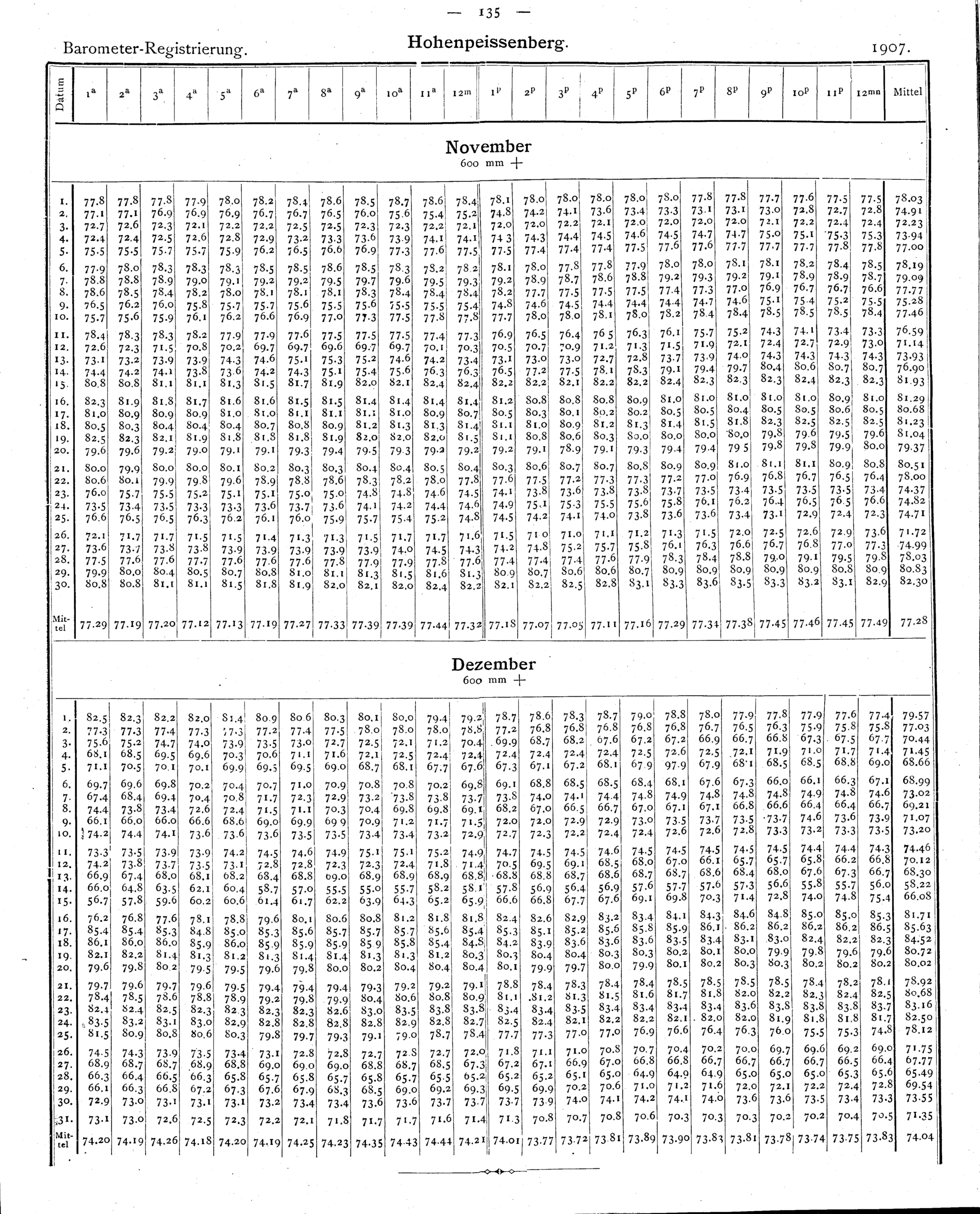 Auswertung der Barometerregistrierung von Hohenpeissenberg 1906-1910