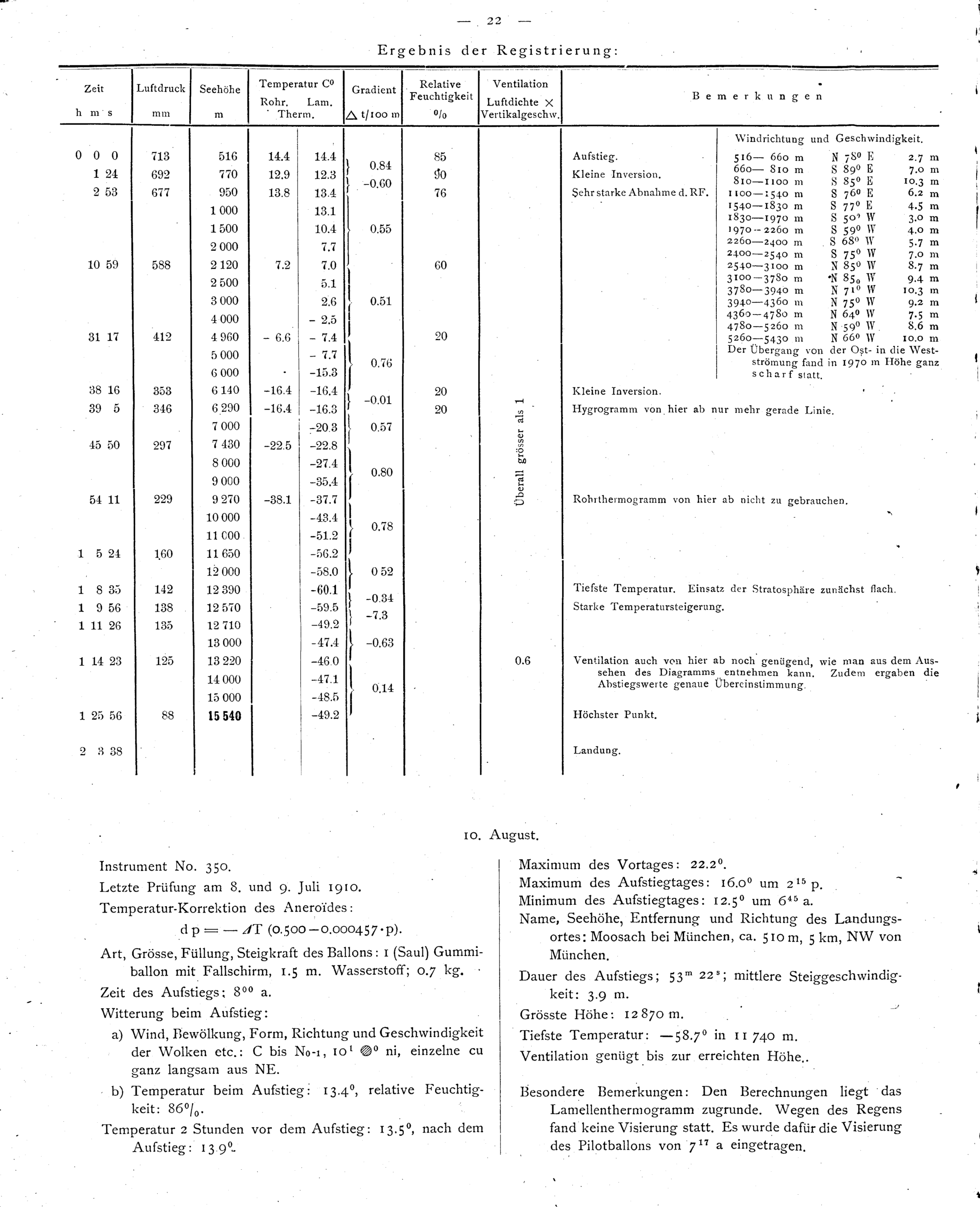 Die Münchener Registrierballonfahrten im Jahre 1910 / August Schmauss