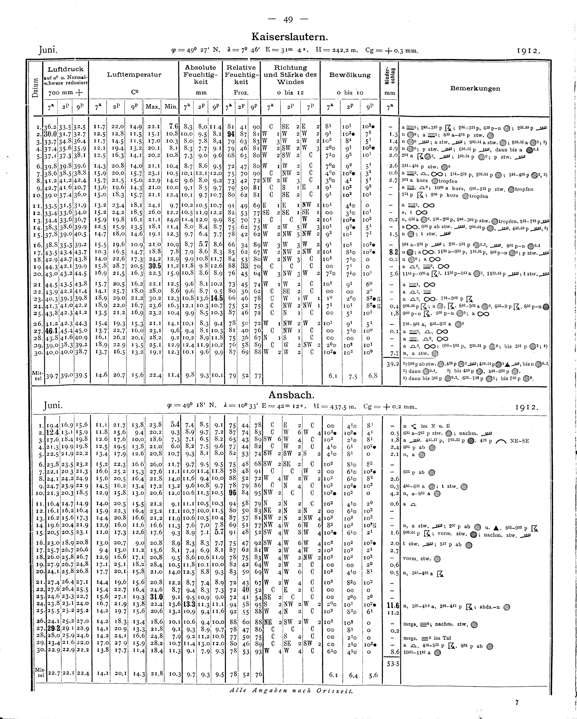 Tägliche Beobachtungen der Stationen II. Ordnung