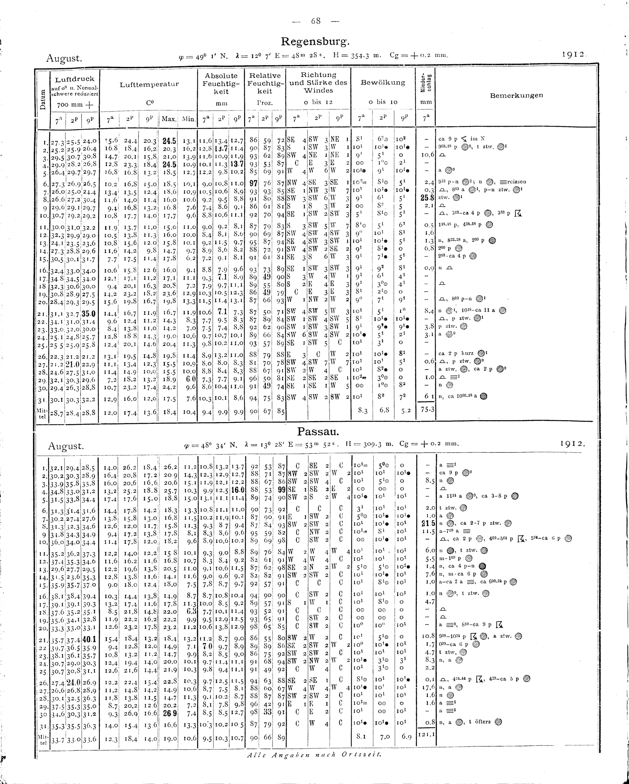 Tägliche Beobachtungen der Stationen II. Ordnung