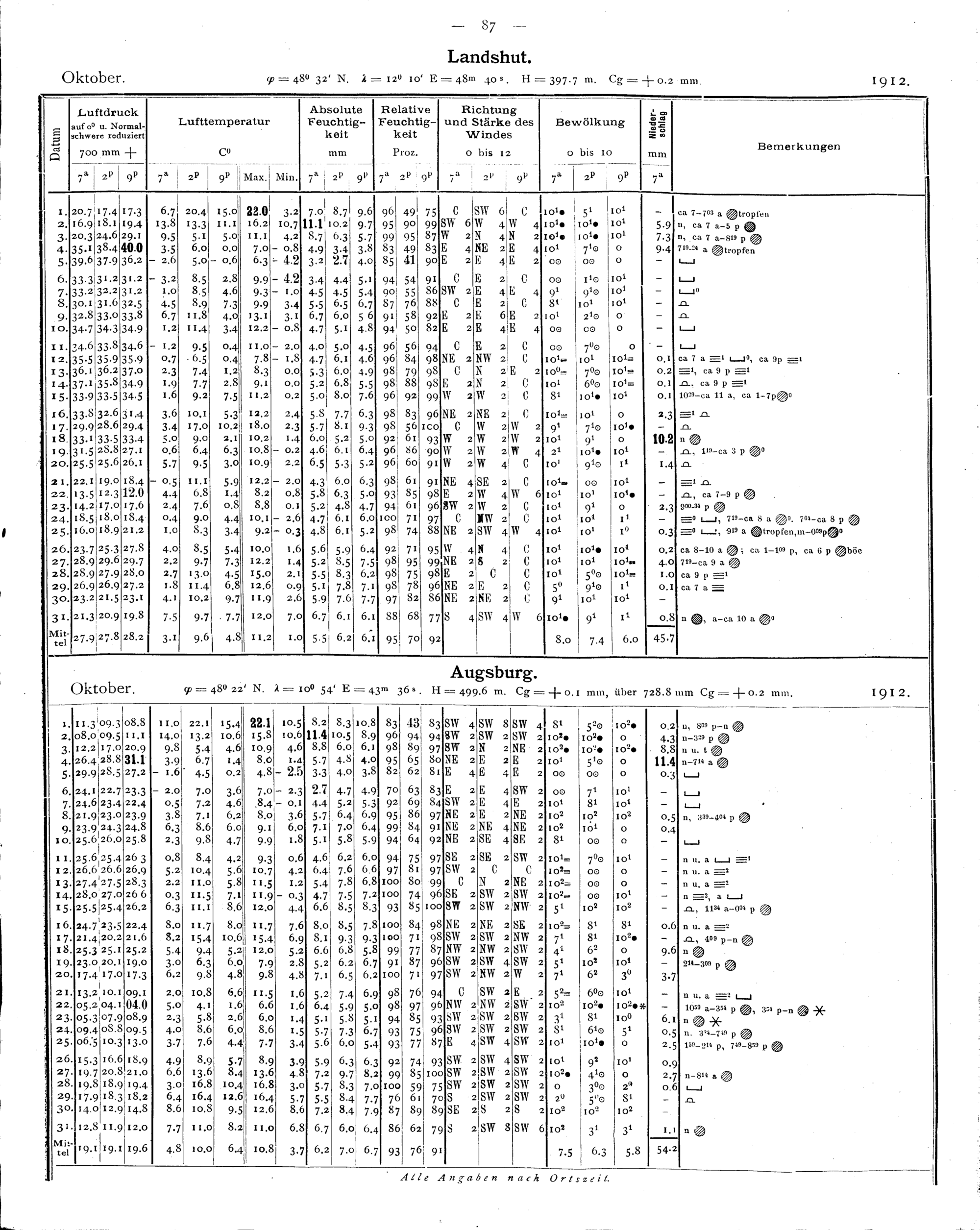 Tägliche Beobachtungen der Stationen II. Ordnung