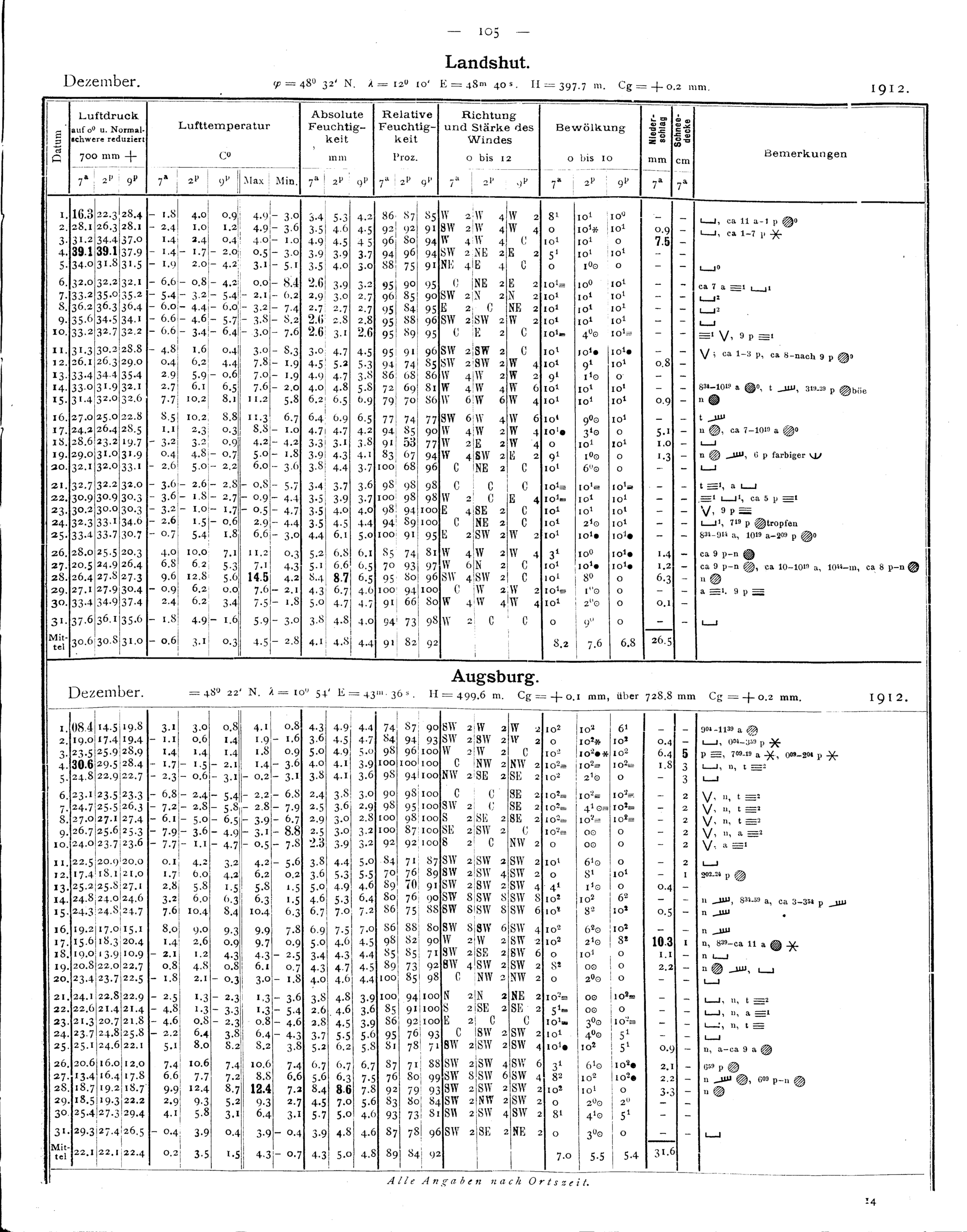 Tägliche Beobachtungen der Stationen II. Ordnung