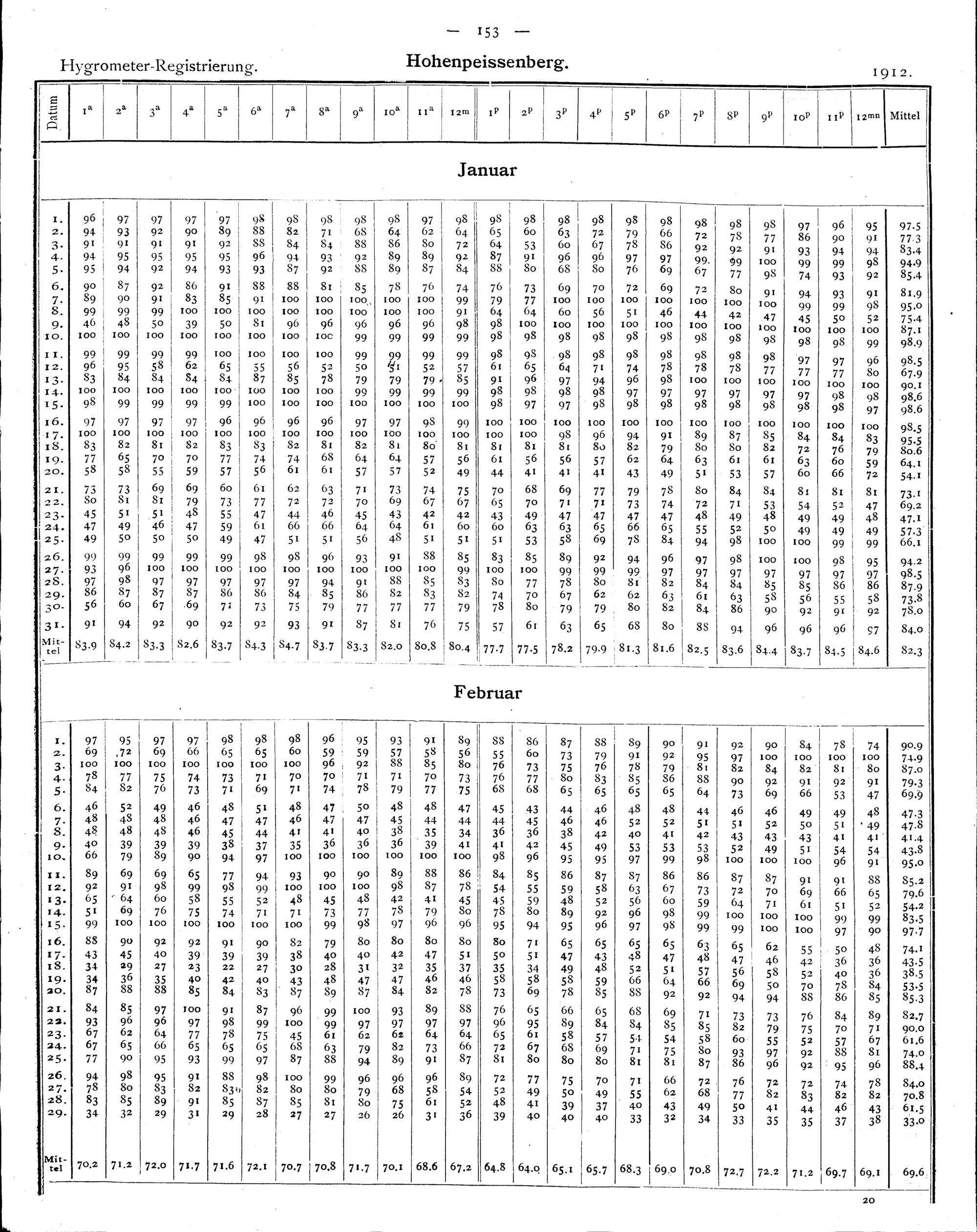Auswertung der Registrierungen von Hohenpeissenberg
